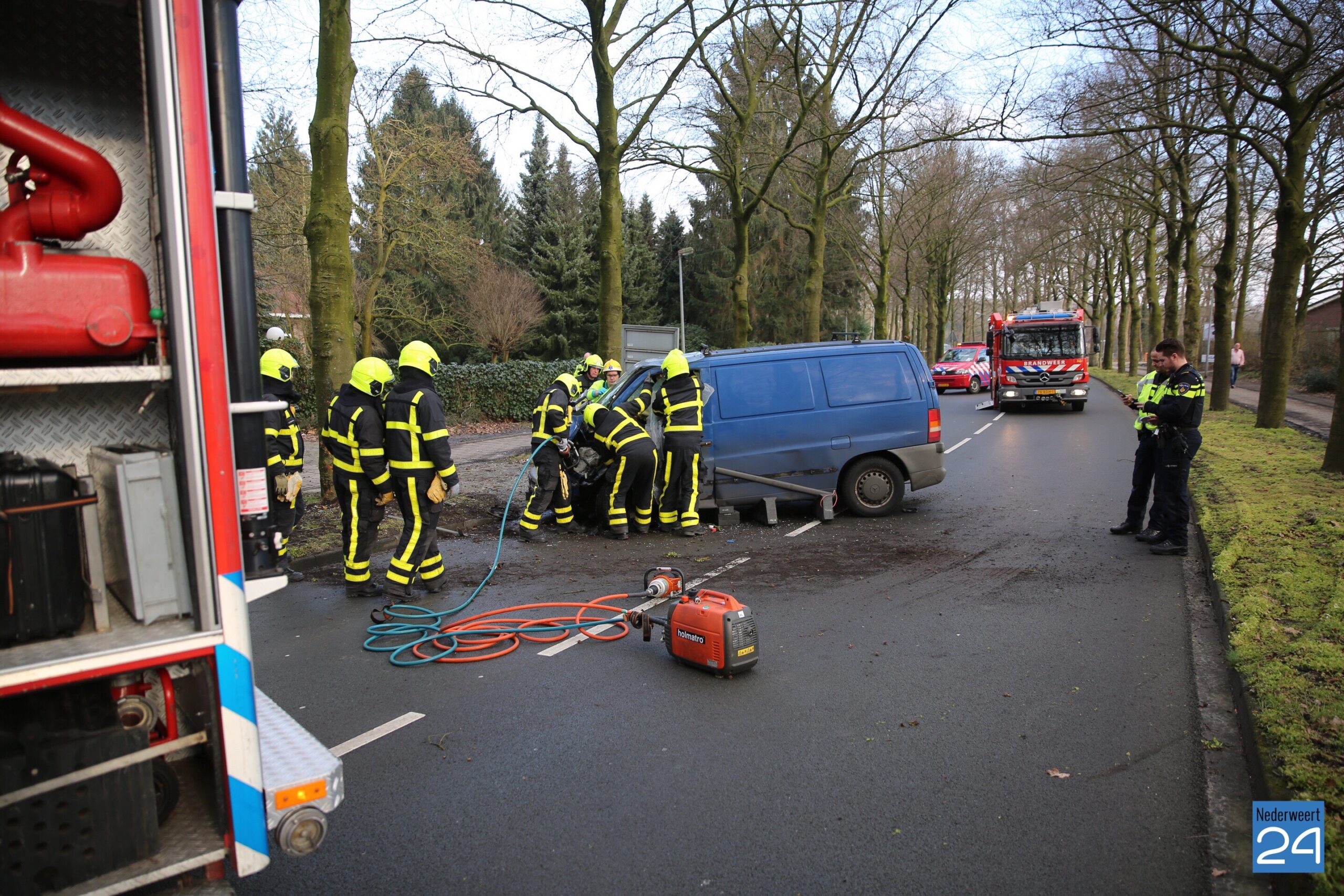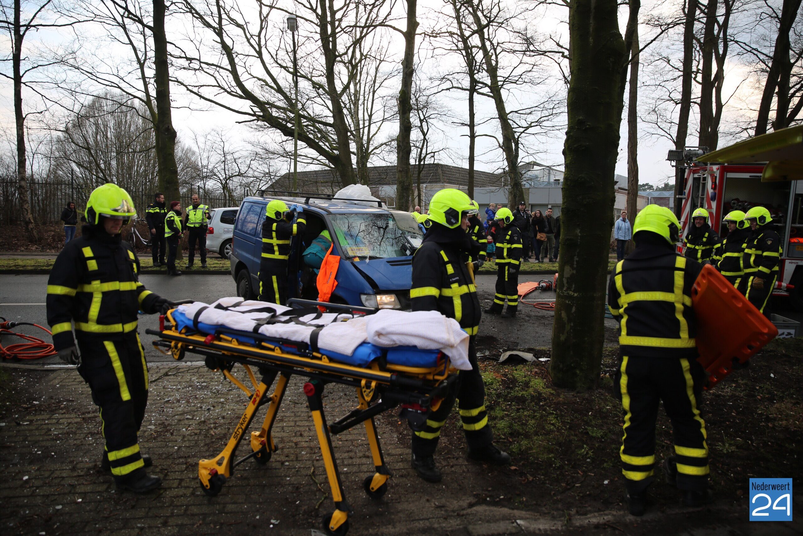 Zondagmiddag is een busje door nog onbekende oorzaak hard tegen een boom gebotst op de Kazernelaan in Weert. De brandweer heeft een technische bevrijding uitgevoerd om het slachtoffer uit het voertuig te halen.