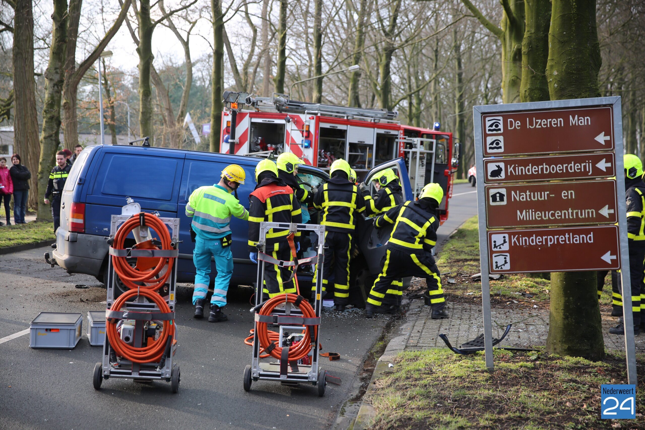 Het busje reed vanuit Sluis 16 richting Weert en is net voorbij het zwembad uit de bocht gevlogen en tegen een boom tot stilstand gekomen. De brandweer heeft met ondersteuning van het ambulancepersoneel de persoon uit het voertuig gehaald. De bestuurder is met onbekende verwondingen naar het ziekenhuis vervoerd.