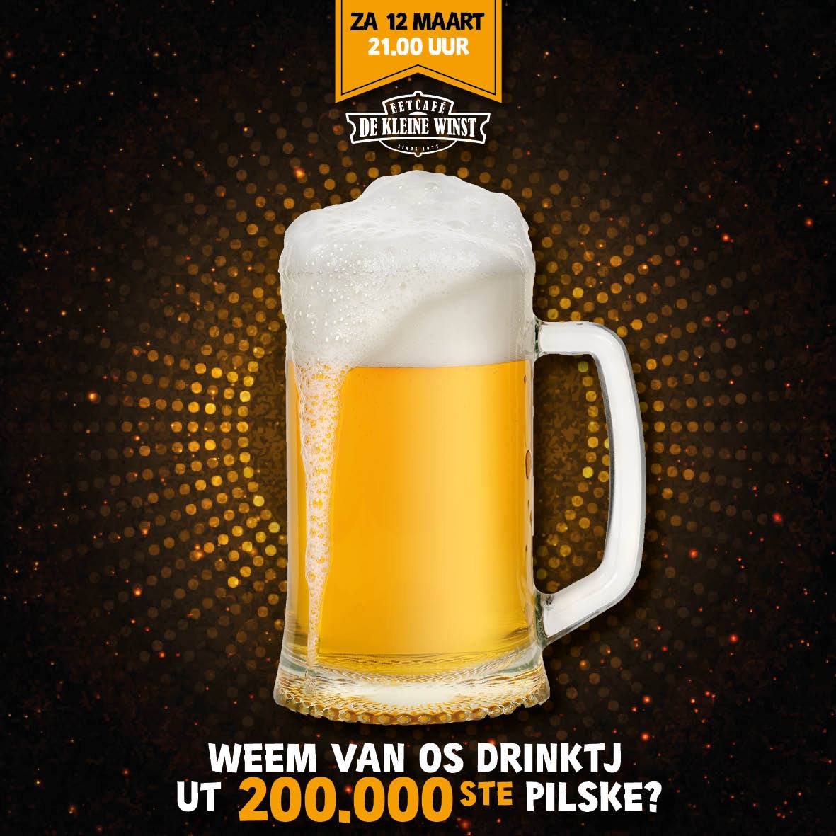 Komend weekend wordt bij Eetcafé De Kleine Winst het tweehonderduizendste biertje getapt. Oude tijden herleven aanstaande zaterdag 12 maart met achter de bar John Cardinaal, Aksel van Bussel en Paul van der Sande en rond 23.00 uur een gedenkwaardig optreden van Ed & Frans.