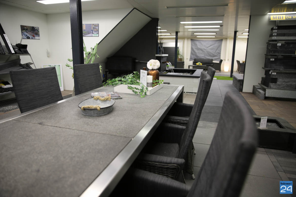 In de vernieuwde showroom kan Koen heerlijk werken aan nieuwe projecten. Je vindt er een uitgebreid assortiment van onder andere: bestrating, waaronder grind, betonnen en gebakken klinkers, beton, natuursteen en keramische tegels – kunstgras – verlichting – schutting – overkapping – tuinhuis – potterie – vlonder – waterpartij – tuintafels – loungesets – vijvers – schaduwdoek – afwatering. “Een plek om inspiratie op te doen zonder dat ik mijn klanten naar andere leveranciers hoef te sturen. We zijn compleet, hebben alles onder één dak en zijn ook nog eens 3 avonden geopend,” aldus Koen.