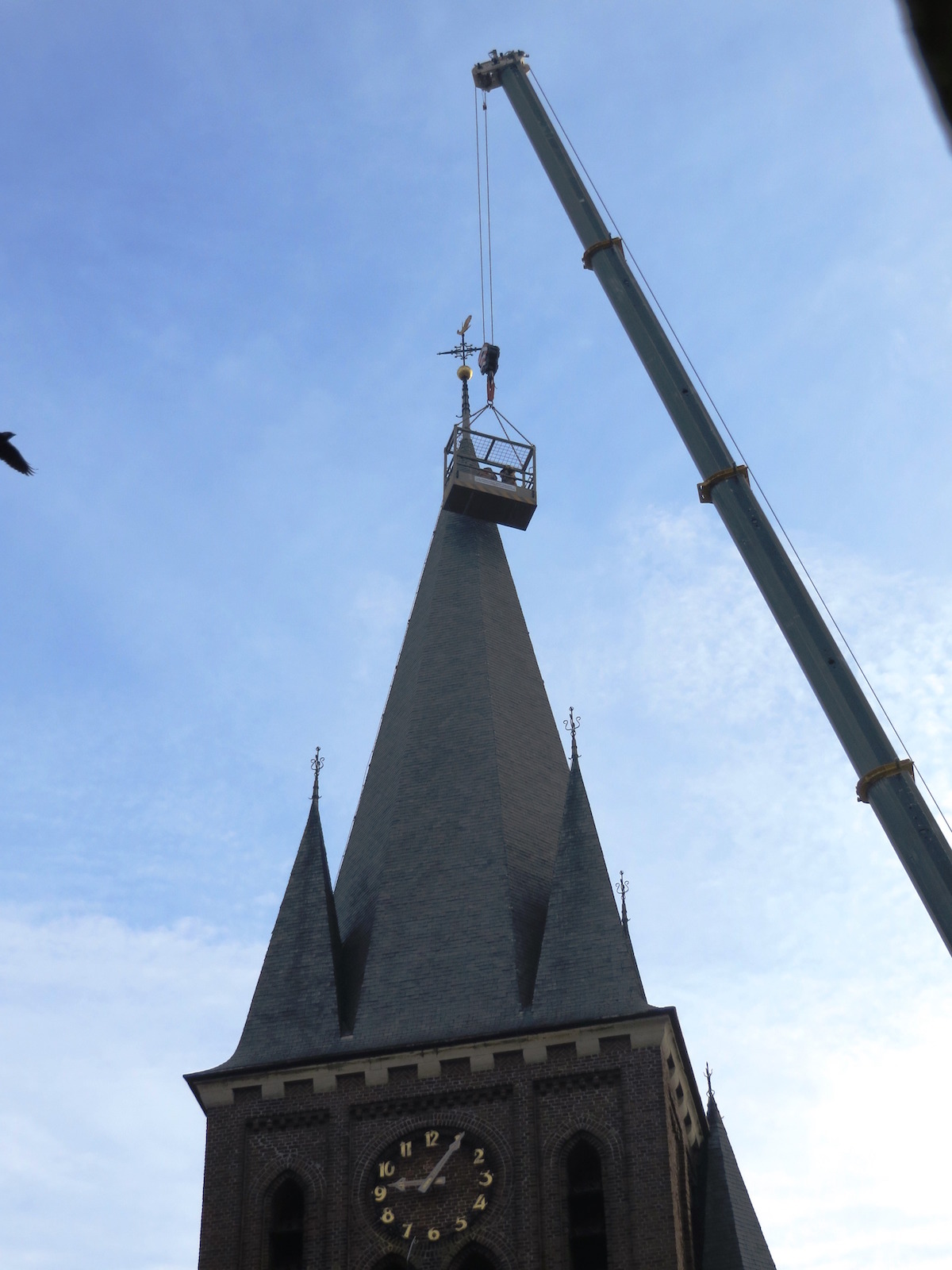 Met een hoogwerker heeft de firma Verkoelen uit Weert de leien op de spits van de kerktoren geïnspecteerd. Er blijken ongeveer 50 leien stuk of hangen scheef. Deze worden vervangen of rechtgezet. Tevens zijn de ledlampen van het torenuurwerk vervangen en is gekeken naar het voegwerk van de toren dat op een aantal plaatsen slecht is. Het onderhoud van vandaag en morgen is een onderdeel van een totaal onderhoudsplan dat de komende 5 jaar bestrijkt en waarmee een begroot bedrag gemoeid is van ruim € 77.000.