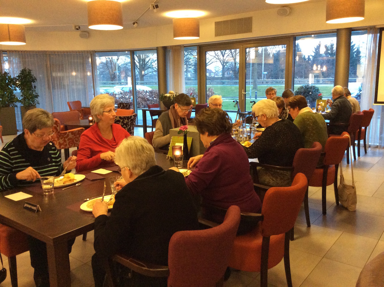 Iedereen was zeer tevreden. Na het eten was er de mogelijkheid om nog een beetje na te kletsen, een kaartje te leggen of een spelletje te doen.