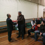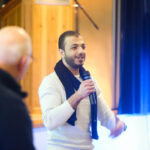 Ahmed Hasan, een statushouder uit Eindhoven, vertelde zijn verhaal, van zijn oorspronkelijke woonplaats, zijn vluchtroute tot zijn verblijf in Nederland. Aan de hand van foto’s neemt hij ons mee in zijn vlucht. Na een week in een ondergrondse gevangenis te hebben gezeten, wist Ahmed te vluchten. Eerst met een taxi naar Damascus en vervolgens met het vliegtuig naar Turkije. Van hieruit via een smokkelaar met een bootje twee uur op de Middellandse Zee dobberen. De smokkelaars beloofden dat er maar 10 personen op de boot zouden zitten, maar bij aankomst bleken het er 58 te zijn. Na de overtocht moest hij 65 kilometer lopen. “Grieken mogen je niet vinden want zij worden beloond als ze een vluchtelingen zien en hiervan aangifte doen. Je wilt ook niet aangehouden worden want dan krijg je een stempel, moet je een vingerafdruk achterlaten en mag je niet meer weg uit dat land”. Uiteindelijk kwam Ahmed via Oostenrijk in Venlo terecht. De reis heeft hem in totaal 5.000 euro gekost, maar sommigen moeten veel meer betalen.