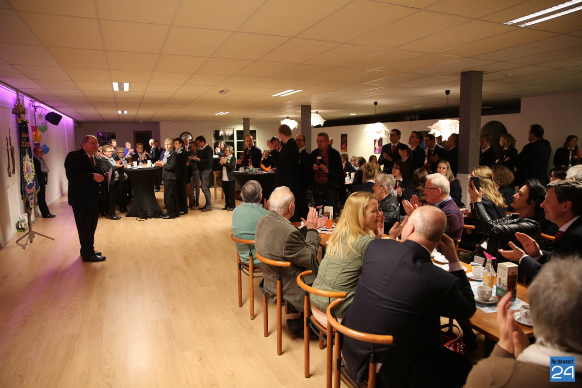 Voorzitter Giel Bruijnaers sprak de aanwezigen toe en had voor een aantal leden een verrassing meegenomen.
