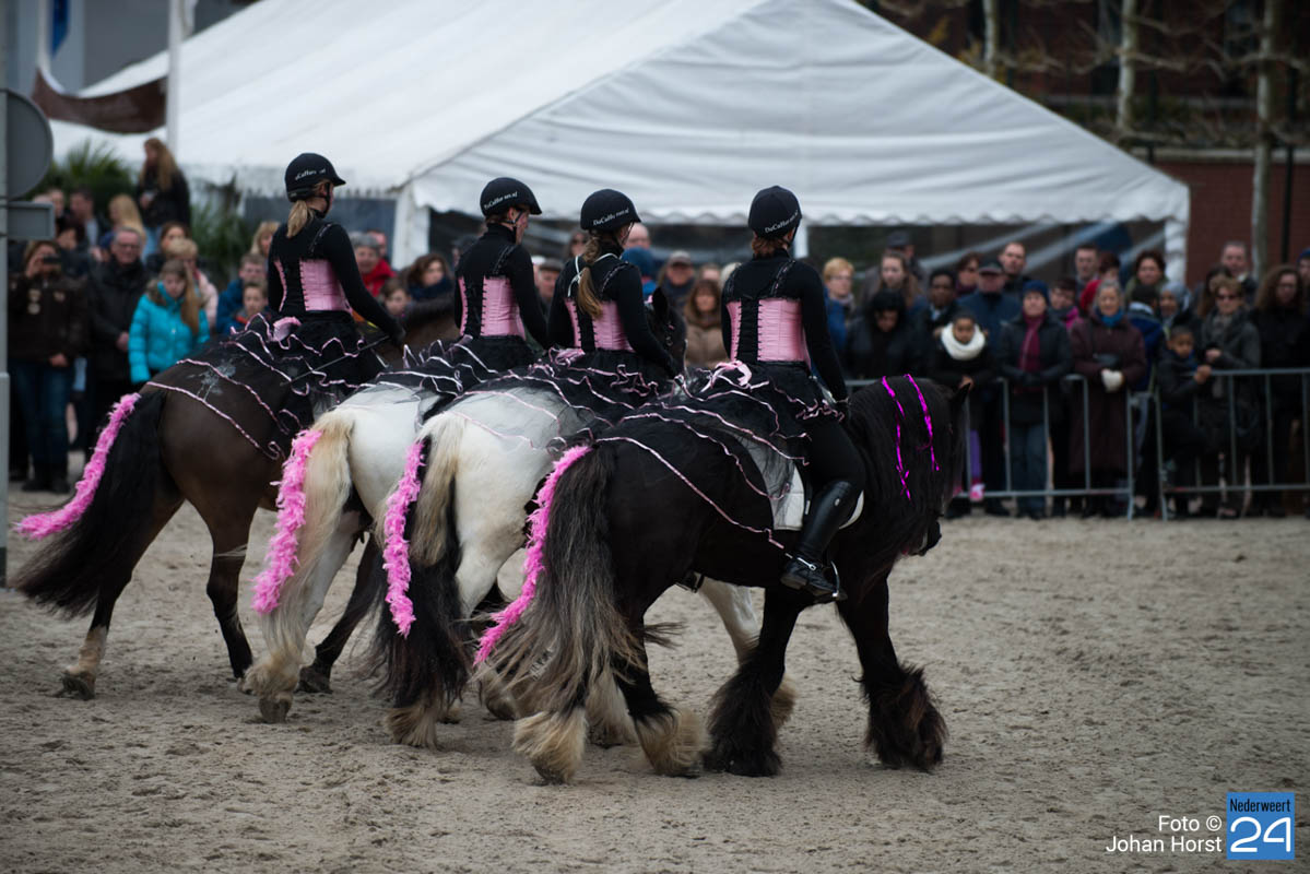 Bij een afscheid hoort natuurlijk een ritje op het voor de Weerter fokpaarden traditionele vliegende tapijt. Na hen was het de beurt aan de jeugdige waaghalzen.