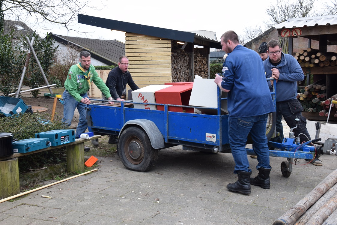 Op Scoutcentrum de Boelenbeem aan de andere kant van het kanaal werd door de leiding ook de handen uit de mouwen gestoken. De tuin en lokalen aan de Bredeweg kregen een grote opruim/opknapbeurt. Wist je dat dit vroeger de brandweerkazerne was? Er werden nieuwe plantjes gepoot en de kampvuurkuil ziet er ook steeds mooier uit. De hele dag werden alle uitgestelde klussen eens goed onder handen genomen. En ook hier kon iedereen na een stevige lunch weer verder werken.