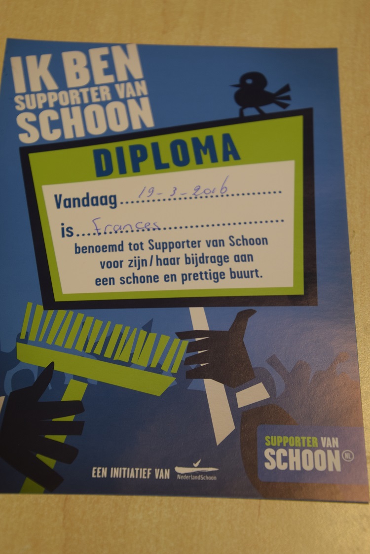 Ze begonnen ’s ochtends om half 10 bij de gemeentegarage. Toen ze klaar waren rond half 12 kregen ze een heerlijke lunch aangeboden in de kantine van de brandweerkazerne. Hoe leuk is dat! Als klap op de vuurpijl hebben alle dolfijnen nog een diploma van ‘Supporter van schoon’ ontvangen.