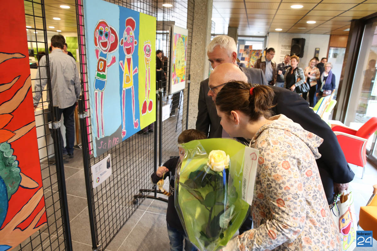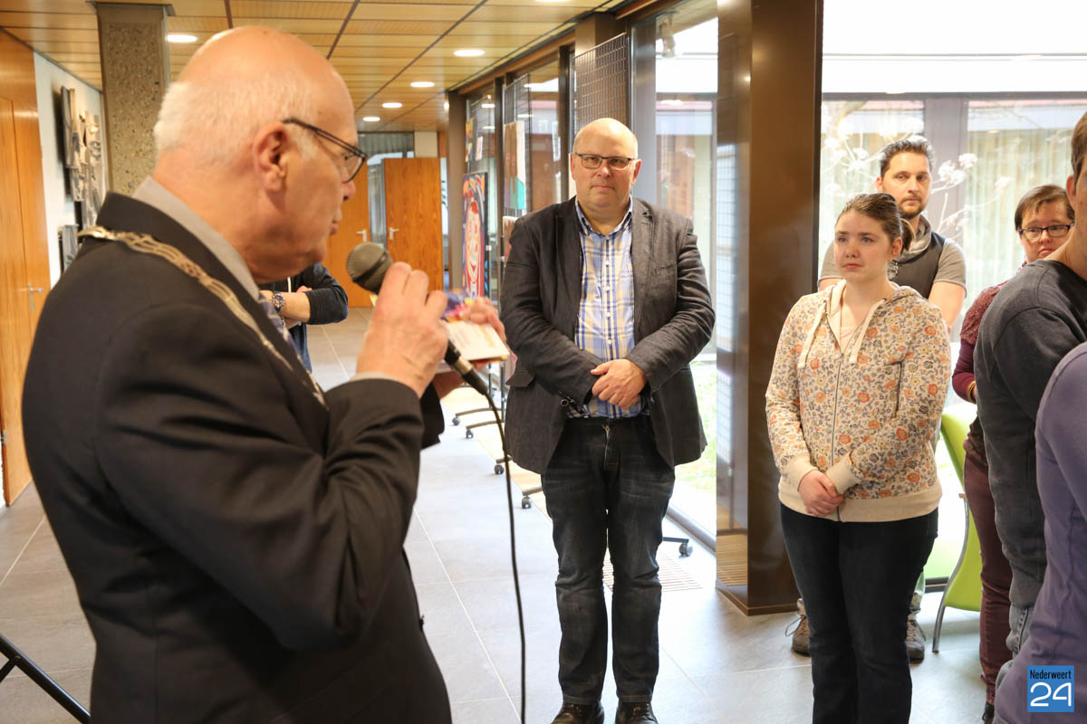 Sanne Clement uit Nederweert heeft vandaag samen met burgemeester Evers en wethouder Geraats de kunstexpositie geopend in het gemeentehuis van Nederweert.