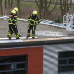 Volgens protocol werd versterking opgeroepen en heeft de brandweer met behulp van de ladderwagen een losse dakplaat verwijderd. Een klusbedrijf heeft daarna een aantal losse dakplaten vastgezet.