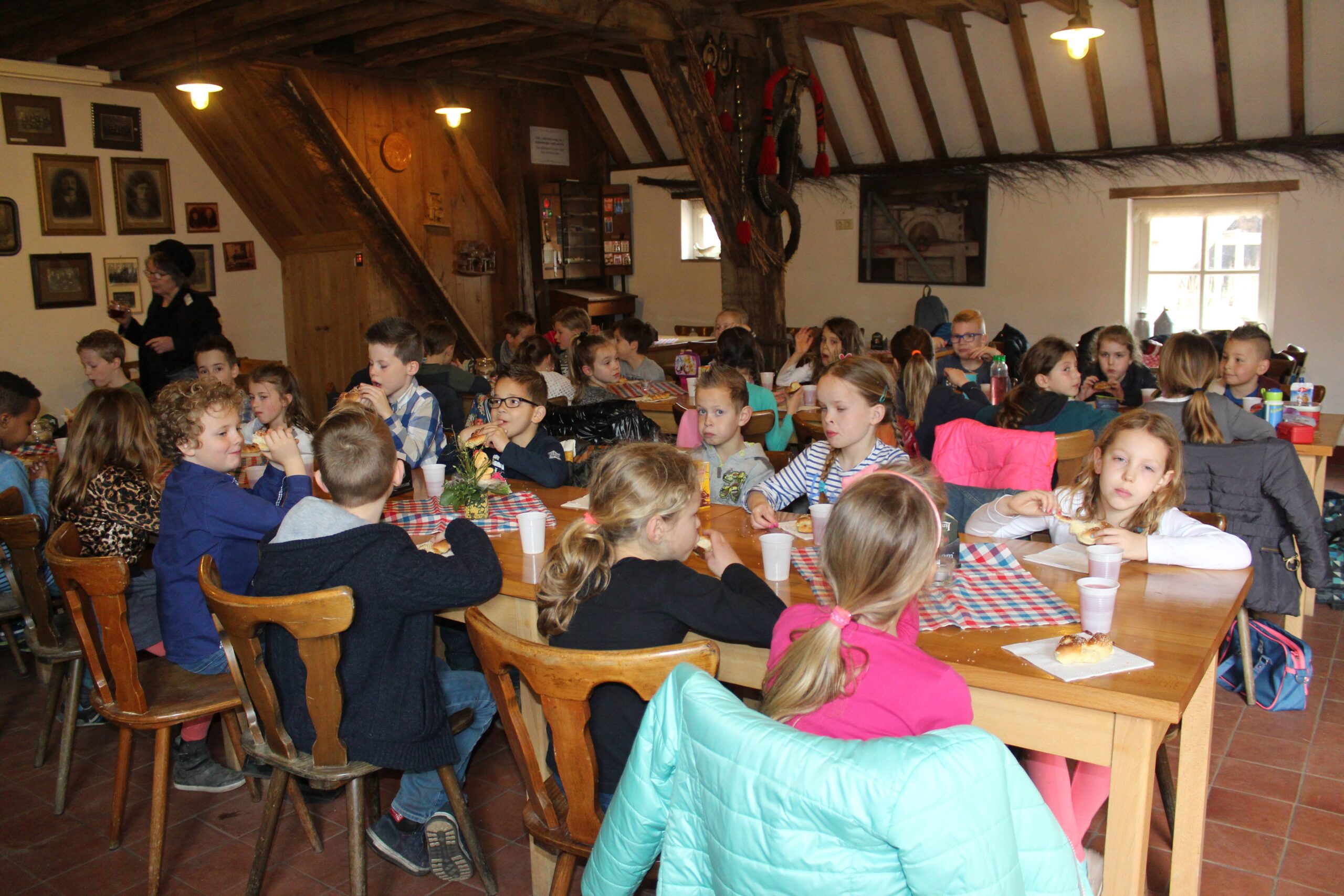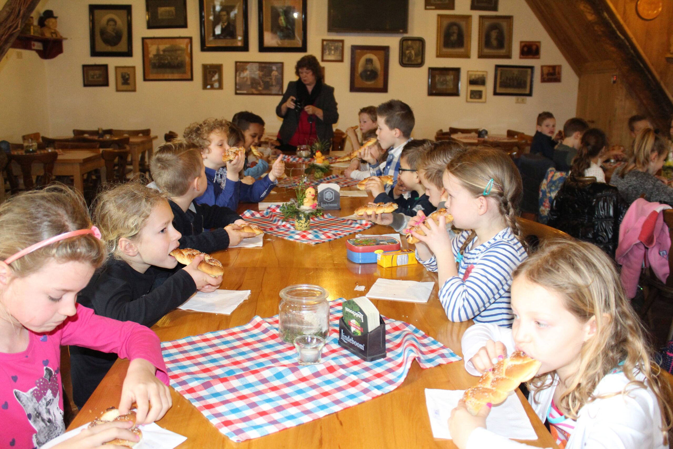 De kinderen gingen samen met bakker Tjeu Kessels en de dames die hem assisteerden aan de slag om een broodje en een vlaaitje te bakken. Ze kregen uitleg over de bakkerij en de manier waarop vroeger brood gebakken werd. Daarnaast kregen de kinderen een rondleiding door het museum en konden ze naar hartenlust buiten spelen. De ochtend werd afgesloten met een lunch in de herberg waarbij de kinderen genoten van hun eigen gemaakte lekkernijen!