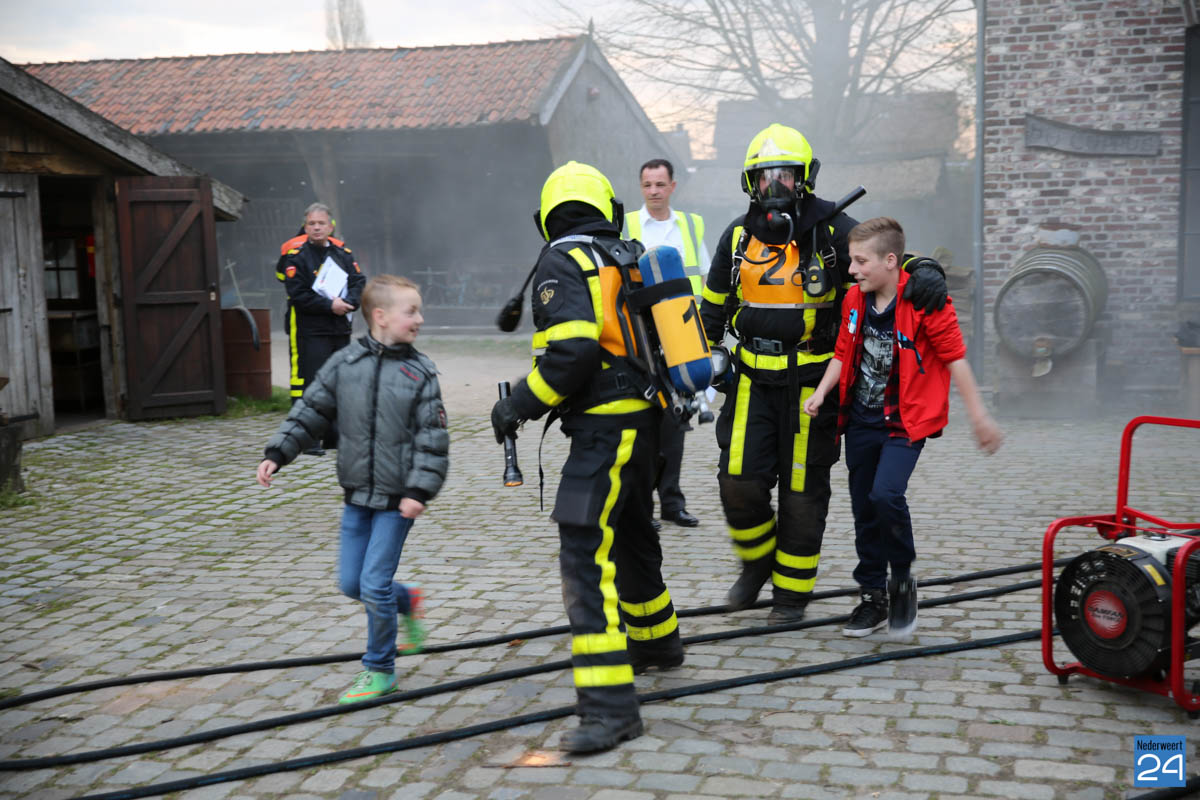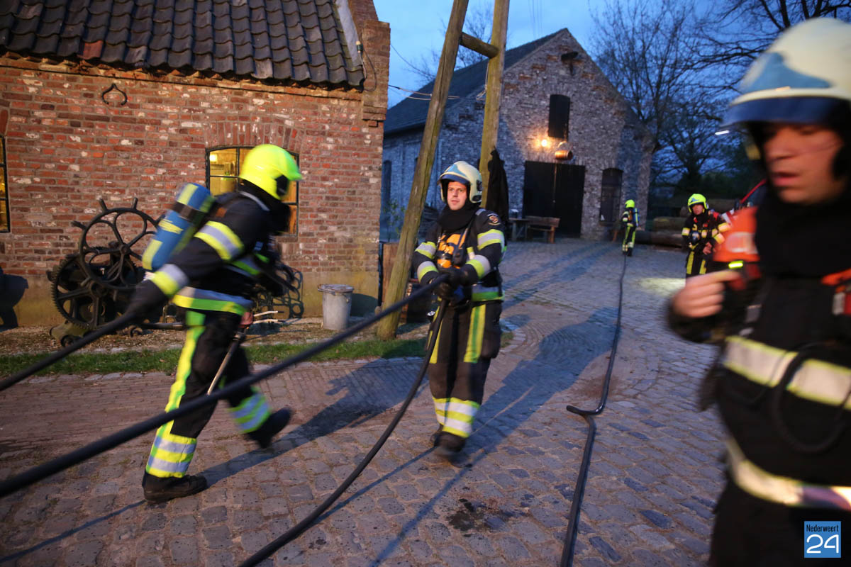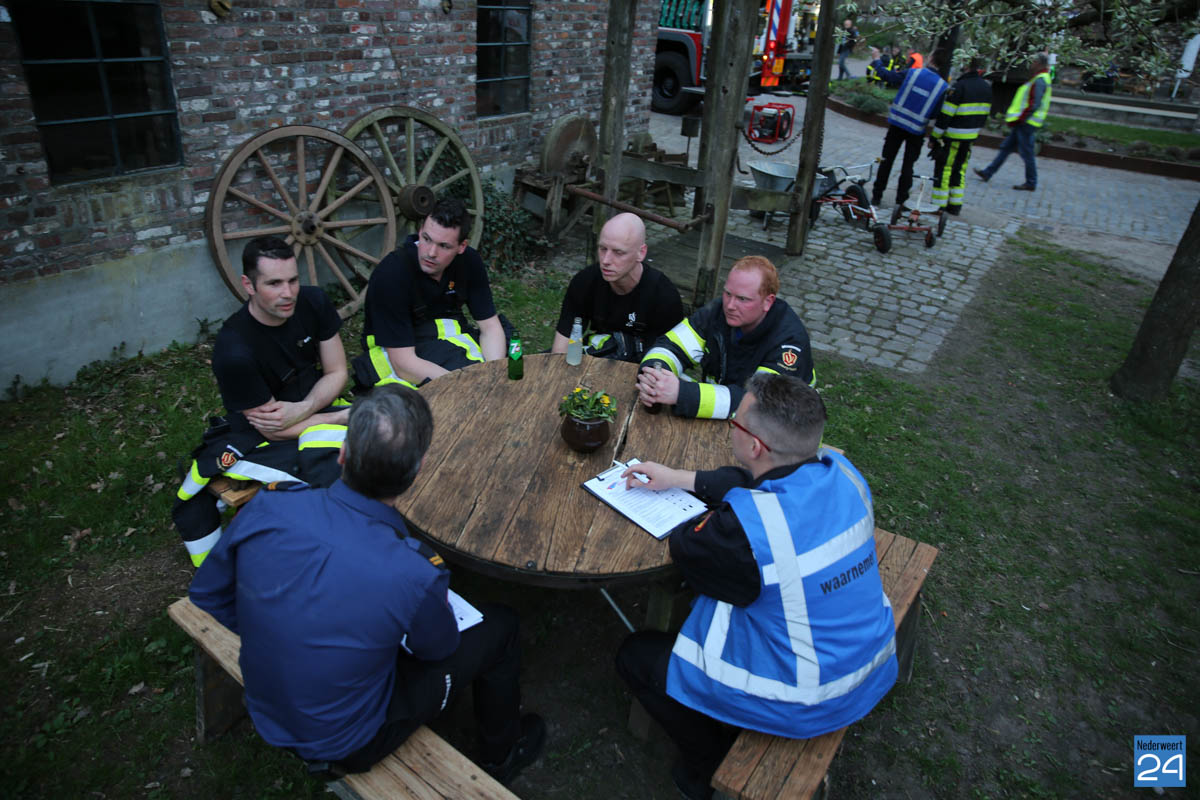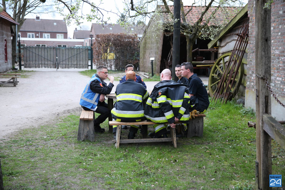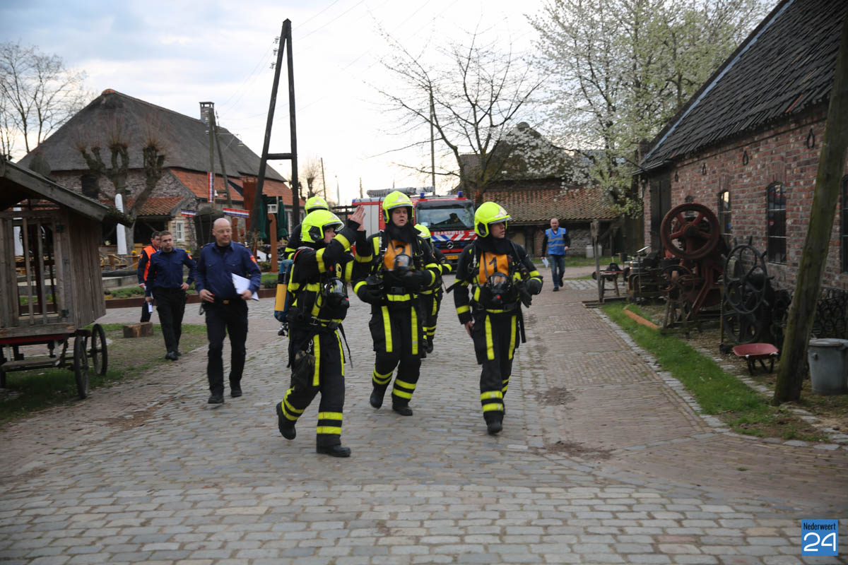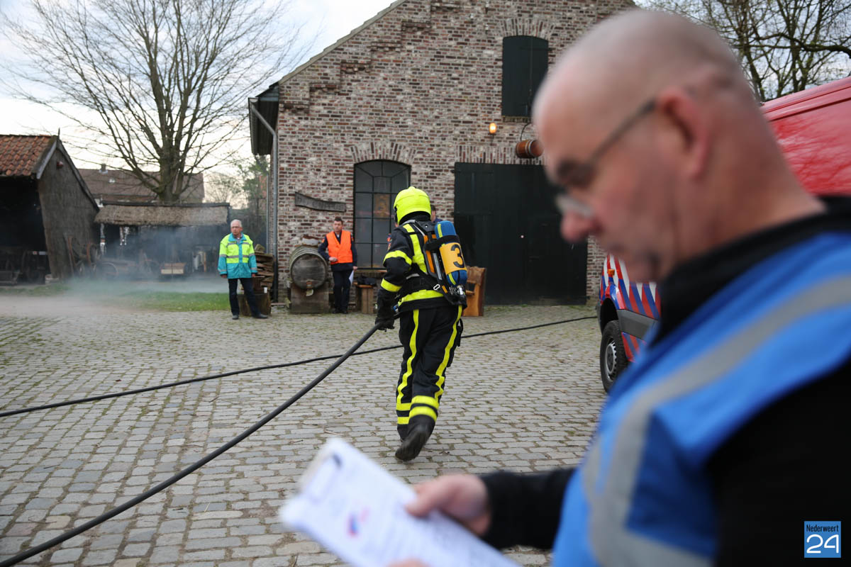 Grote brandweeroefening Eynderhoof Nederweert-1582De brandweerkorpsen van Nederweert, Meijel en Beesel-Reuver hielden maandagavond een realistische oefening bij Openluchtmuseum Eynderhoof in Nederweert-Eind. Alle drie de korpsen hebben een team dat meespeelt in de regionale brandweercompetitie. Om wat extra wedstrijdervaring op te doen werd bij Eynderhoof een soortgelijk scenario uitgezet.