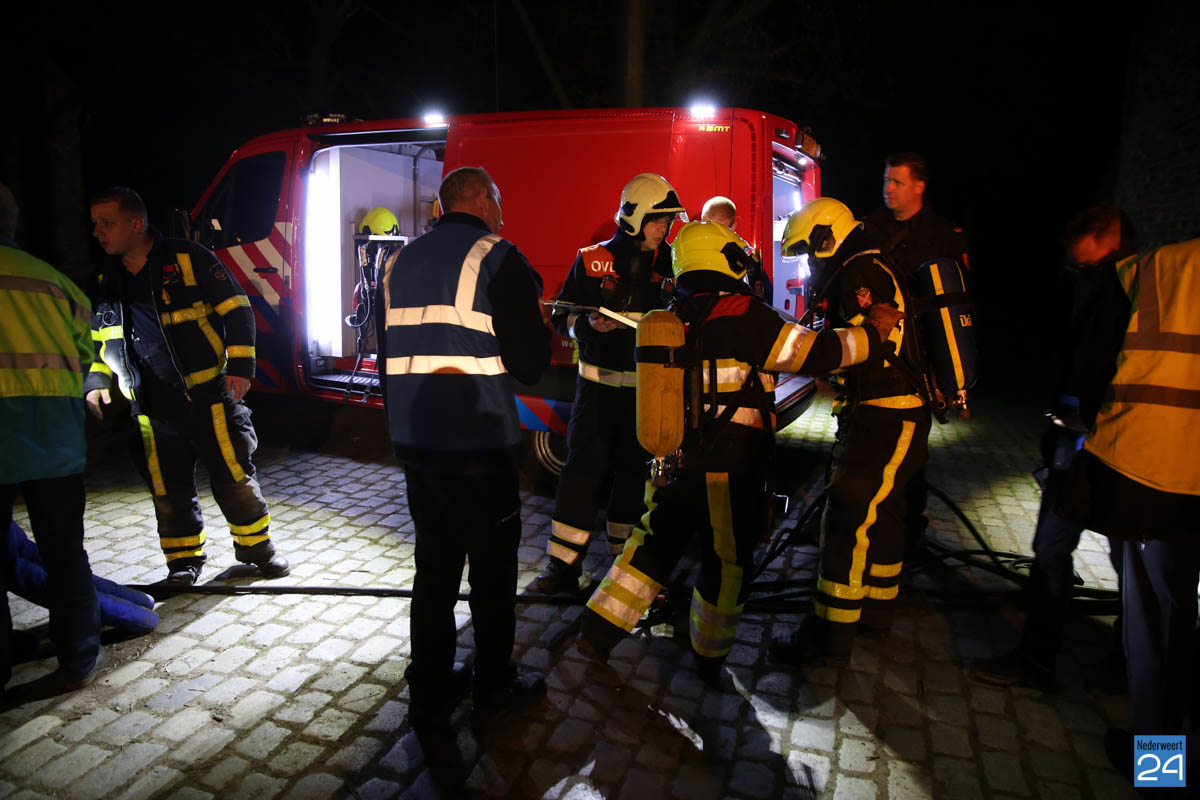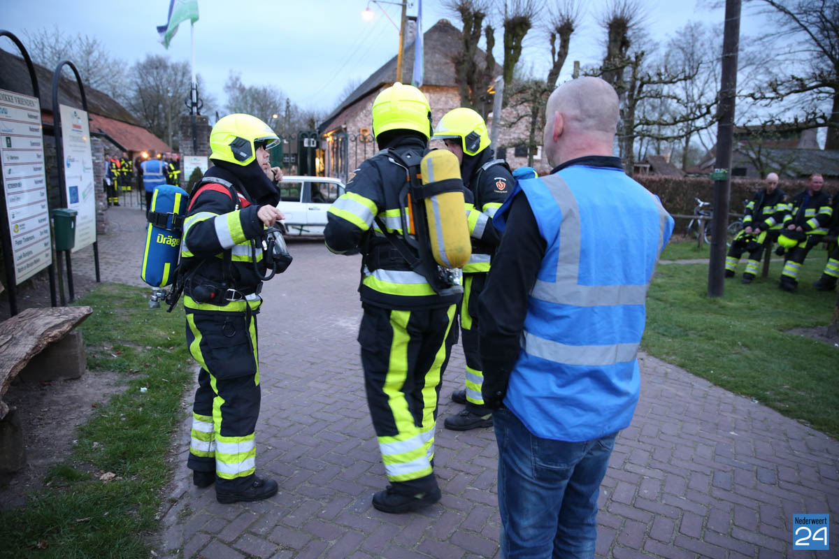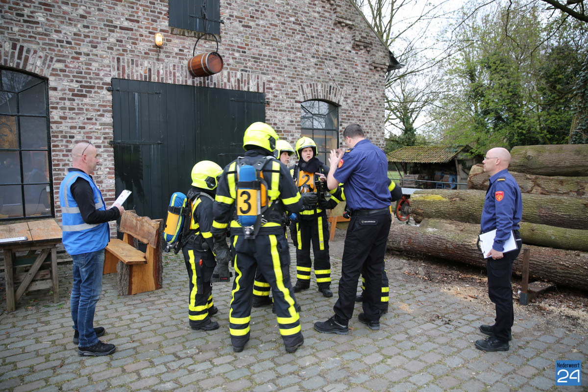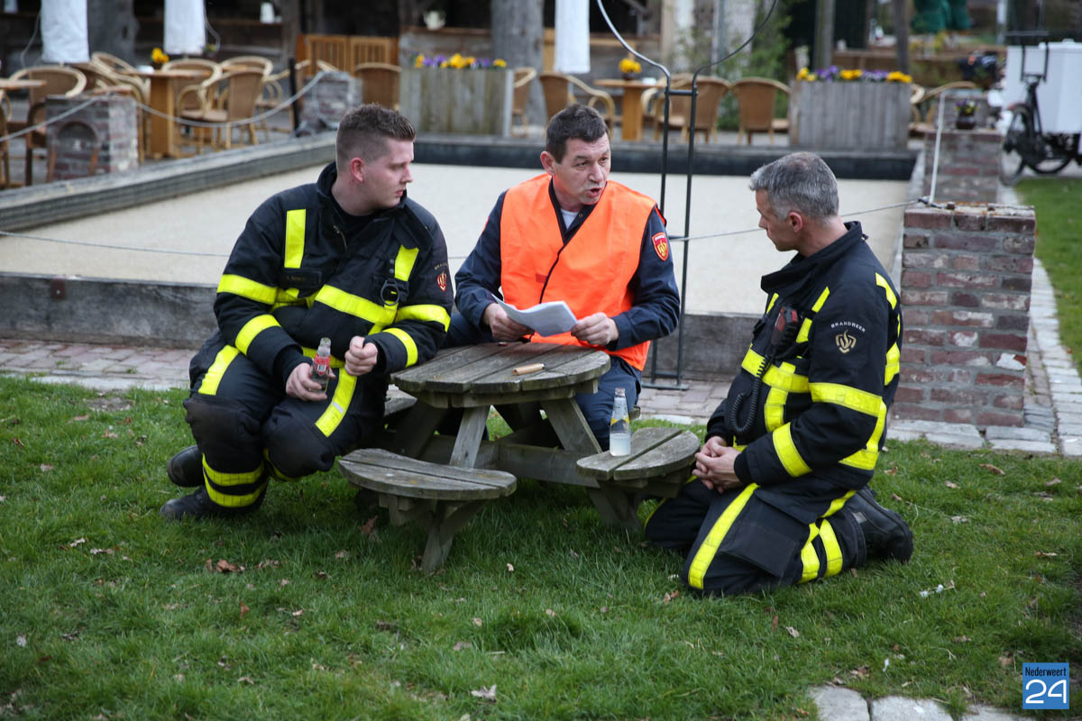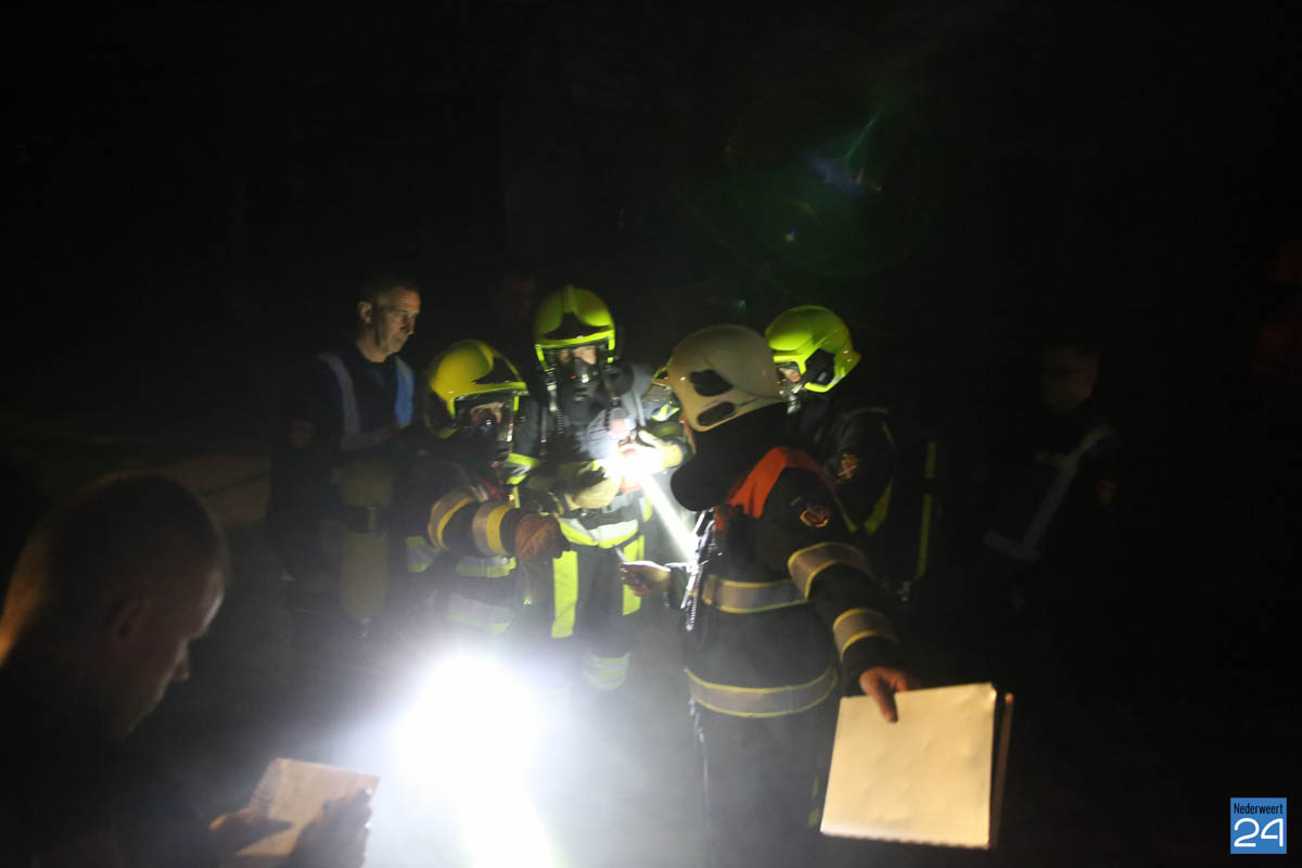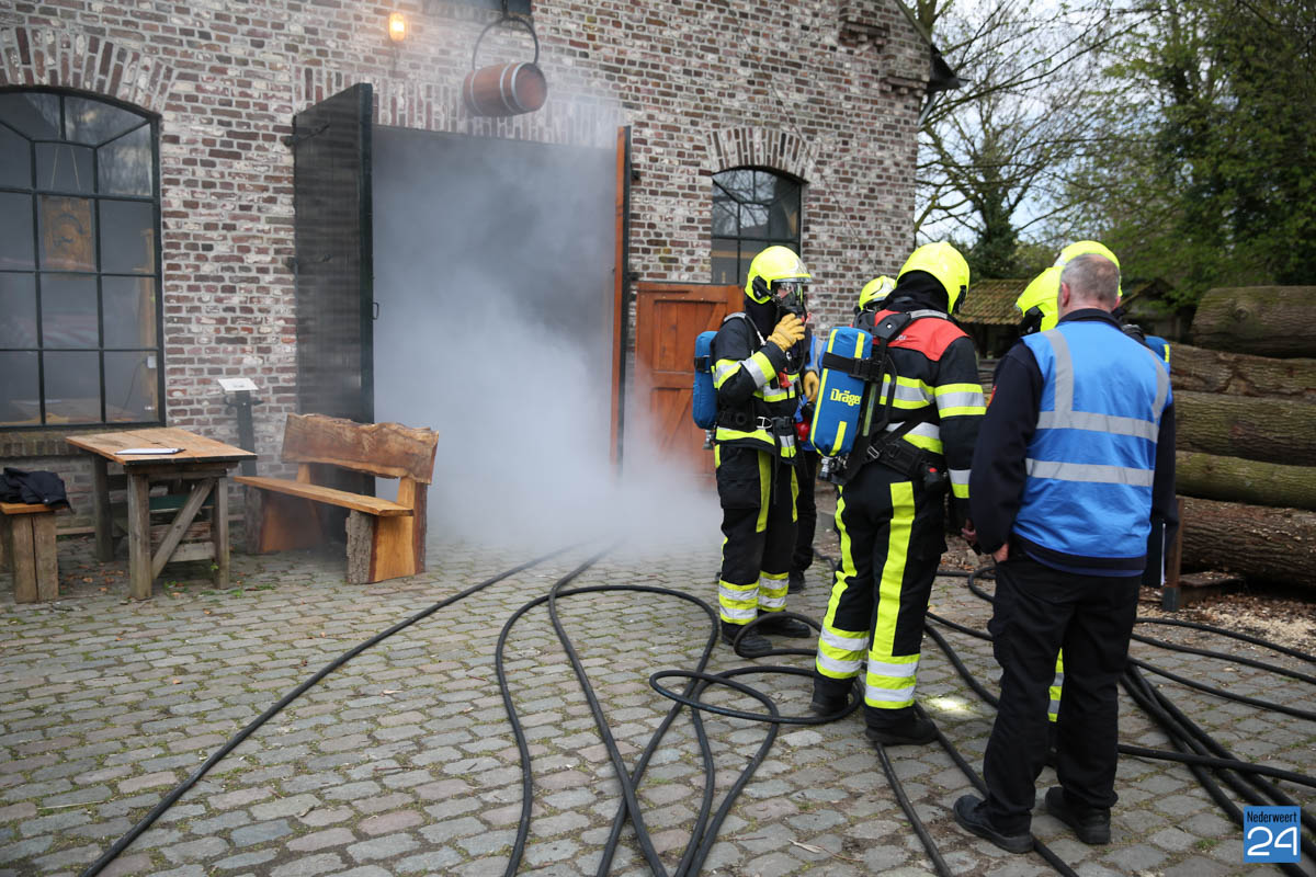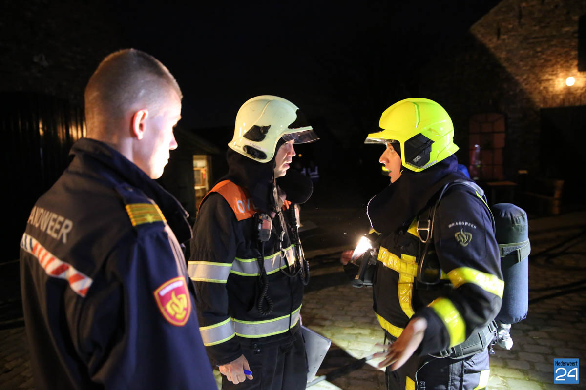 Grote brandweeroefening Eynderhoof Nederweert-1582De brandweerkorpsen van Nederweert, Meijel en Beesel-Reuver hielden maandagavond een realistische oefening bij Openluchtmuseum Eynderhoof in Nederweert-Eind. Alle drie de korpsen hebben een team dat meespeelt in de regionale brandweercompetitie. Om wat extra wedstrijdervaring op te doen werd bij Eynderhoof een soortgelijk scenario uitgezet.