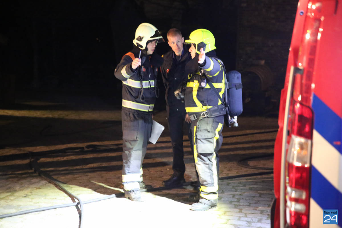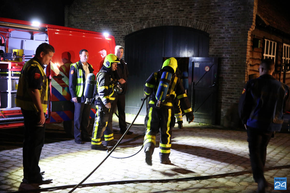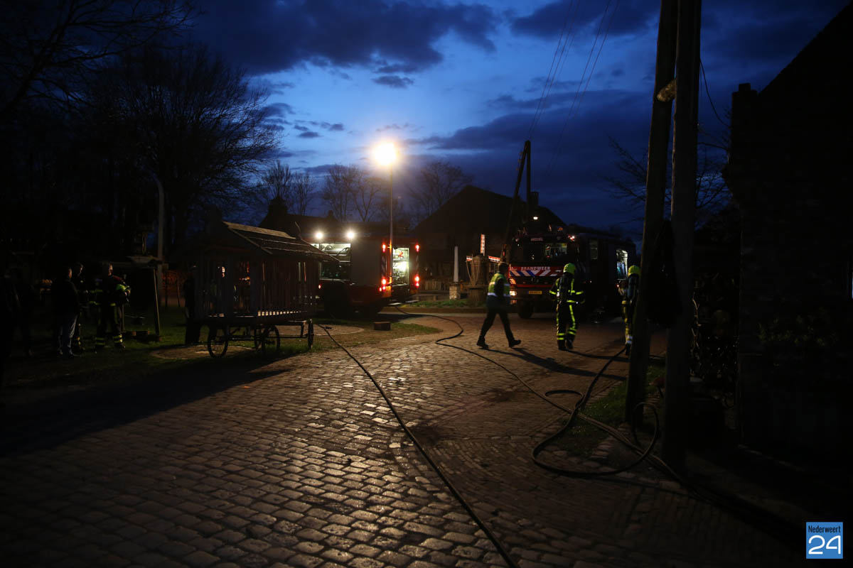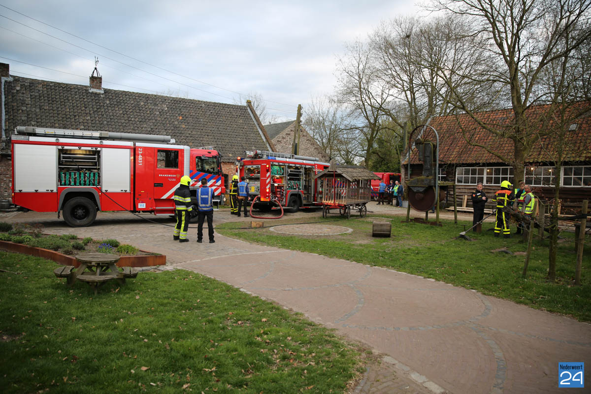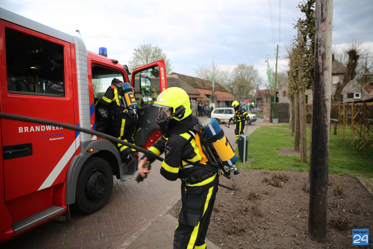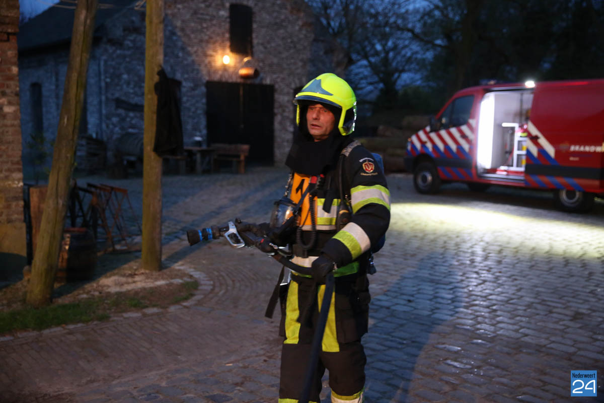 Grote brandweeroefening Eynderhoof Nederweert-1582De brandweerkorpsen van Nederweert, Meijel en Beesel-Reuver hielden maandagavond een realistische oefening bij Openluchtmuseum Eynderhoof in Nederweert-Eind. Alle drie de korpsen hebben een team dat meespeelt in de regionale brandweercompetitie. Om wat extra wedstrijdervaring op te doen werd bij Eynderhoof een soortgelijk scenario uitgezet.