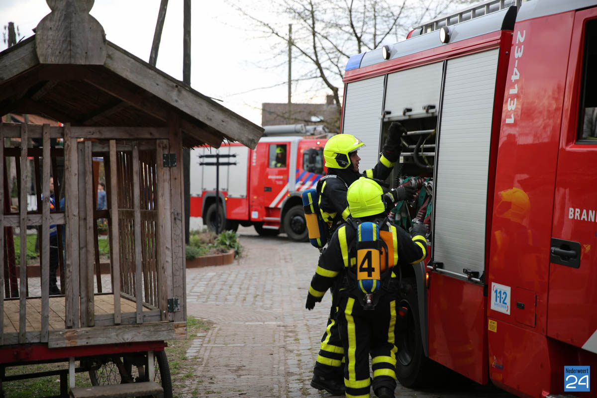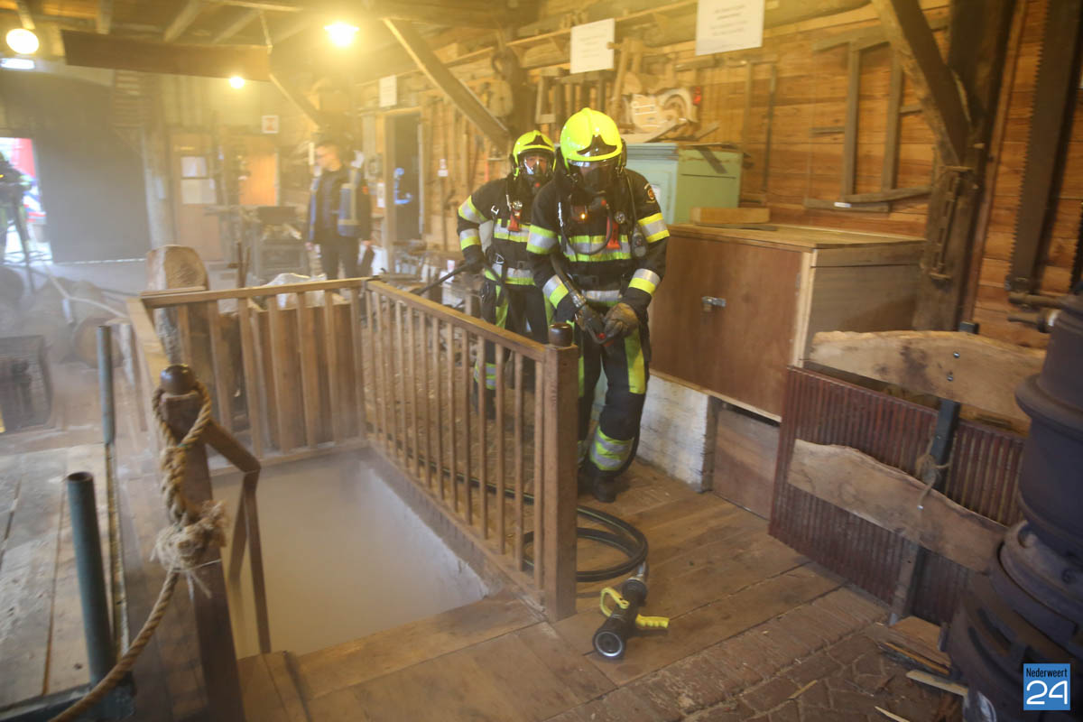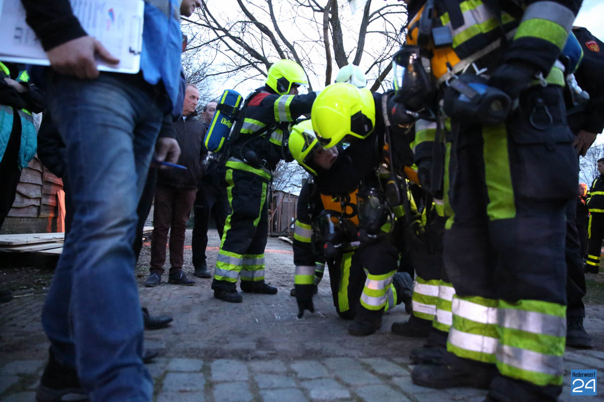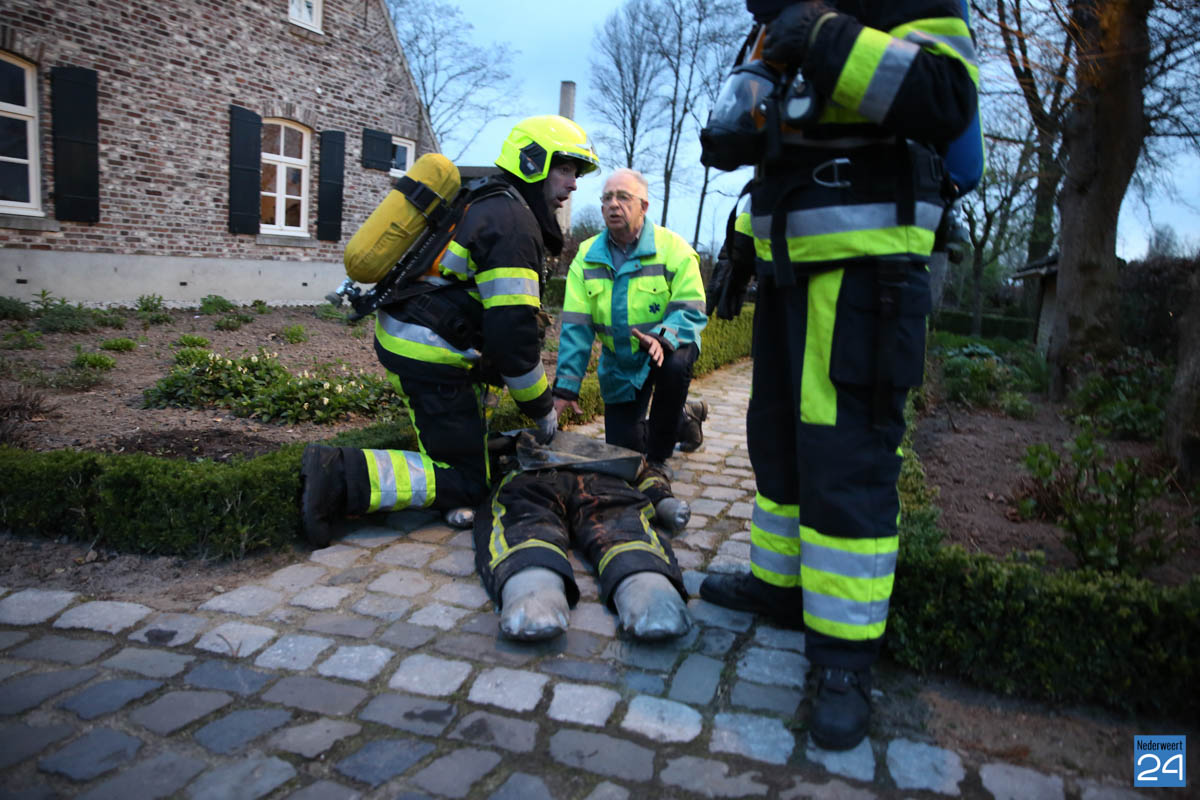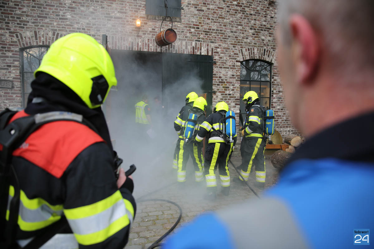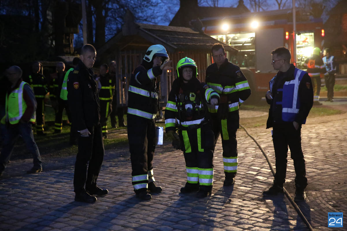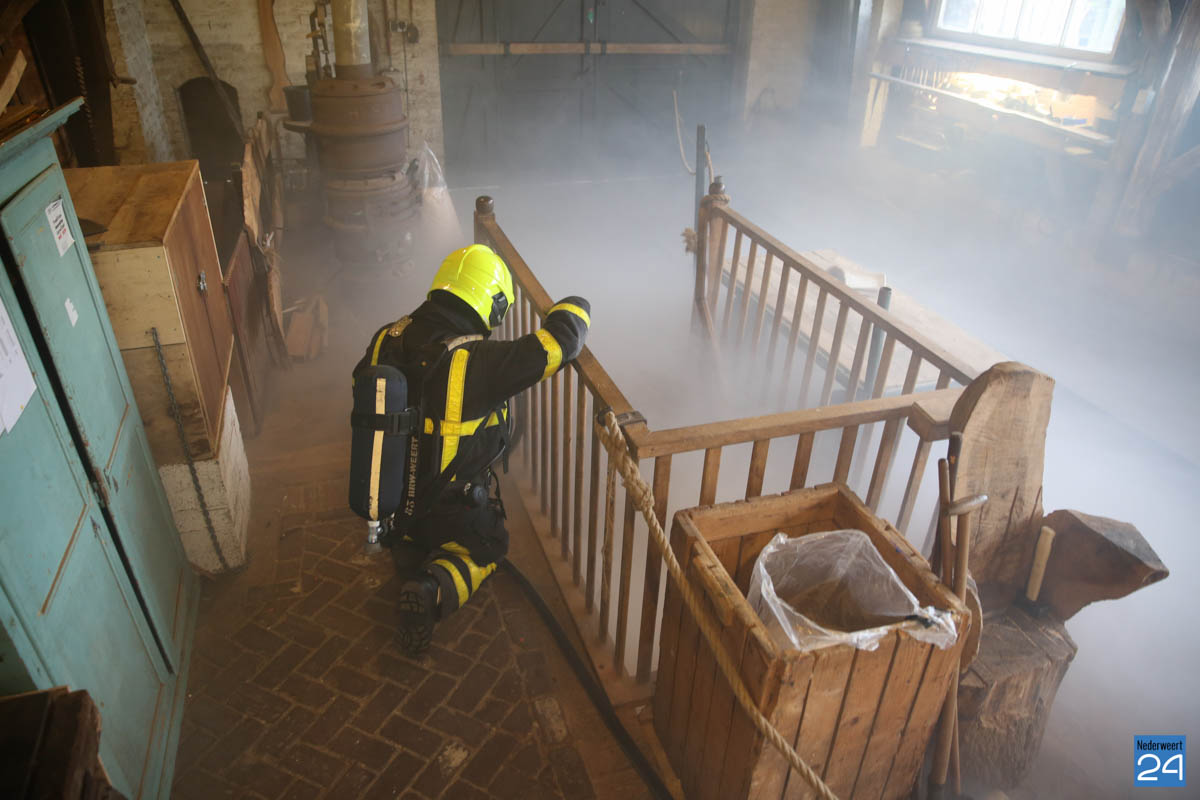 Grote brandweeroefening Eynderhoof Nederweert-1582De brandweerkorpsen van Nederweert, Meijel en Beesel-Reuver hielden maandagavond een realistische oefening bij Openluchtmuseum Eynderhoof in Nederweert-Eind. Alle drie de korpsen hebben een team dat meespeelt in de regionale brandweercompetitie. Om wat extra wedstrijdervaring op te doen werd bij Eynderhoof een soortgelijk scenario uitgezet.