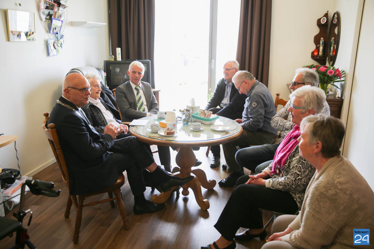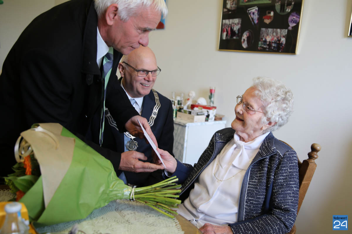 Vandaag viert To Knapen-Brentjens haar 103e verjaardag in het bijzijn van haar familie. Burgemeester Evers en wethouder Geraats verrasten haar vanmorgen met een dikke, mooie bos bloemen. Aan de foto’s aan de wand te zien was de burgervader al vaker langs gekomen om haar speciaal te komen feliciteren.