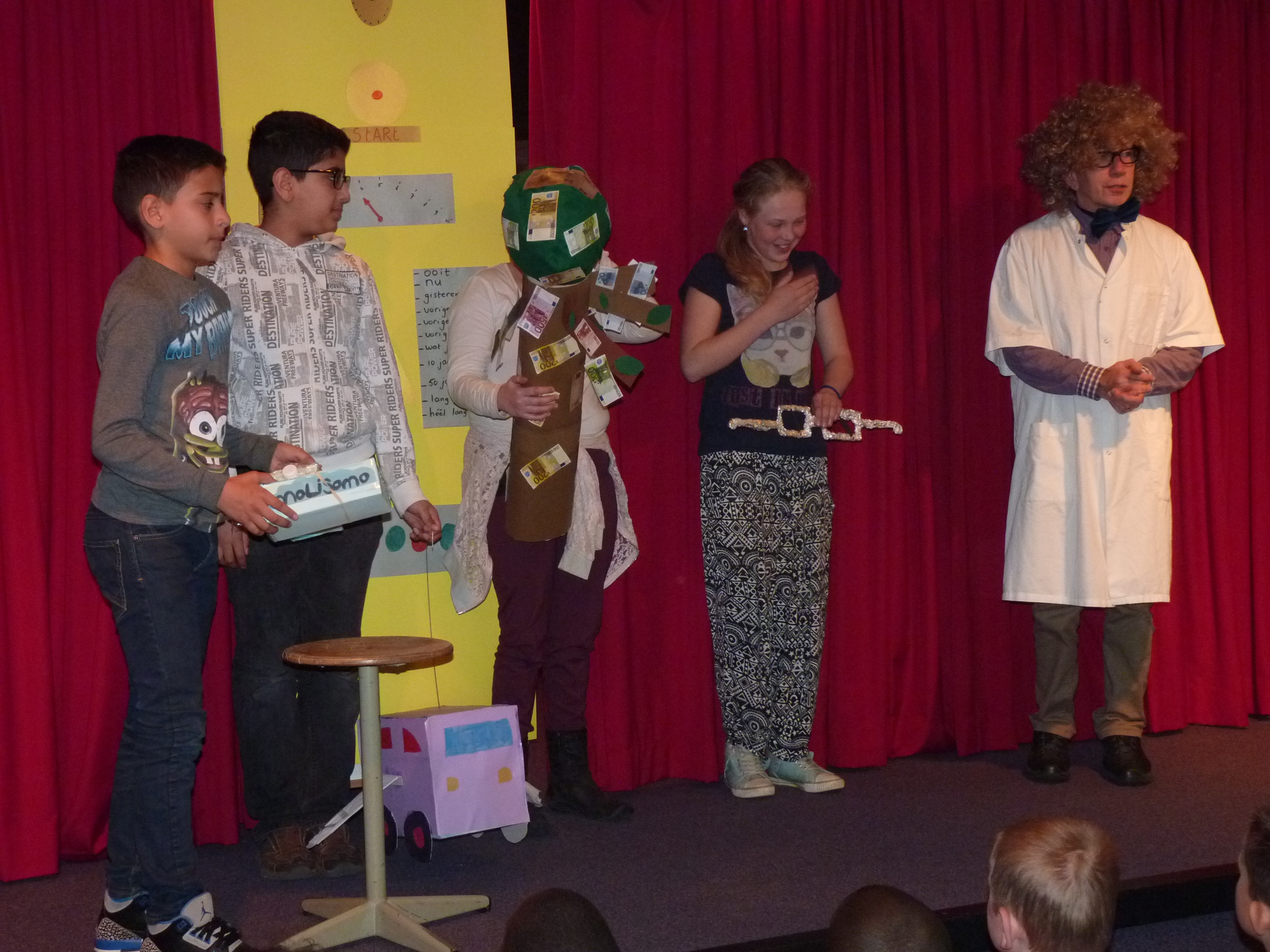 Alle groepen presenteerden o.l.v. Columbus en Einstein in de aula hun ideeën. Een aantal dingen die voorbij kwamen waren: een vliegende auto, een geldboom, een bril met ruitenwissers, vliegende schoenen, een geldbuissysteem, een schrijfvinger, een wensmachine, een pratende huisrobot en een teletijdmachine. Verder werden er een aantal experimenten gedaan en konden alle aanwezigen genieten van een aantal filmpjes waarop te zien was, wat sommige groepen uitgeprobeerd hadden.