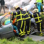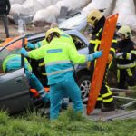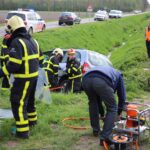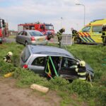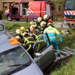 De vrouwelijke inzittende is aanspreekbaar maar kan niet zelf uit de auto komen. De brandweer is bezig haar uit de auto te bevrijden. Beide auto’s zijn zwaar beschadigd. De weg is tijdelijk afgesloten voor verkeer.