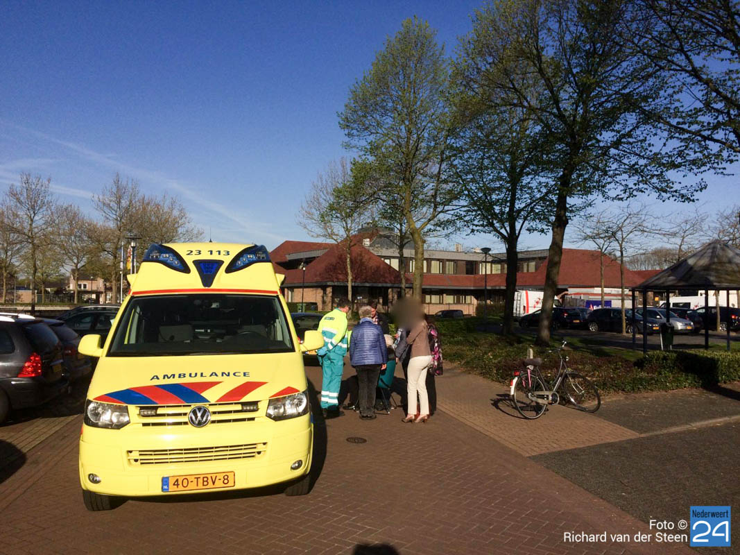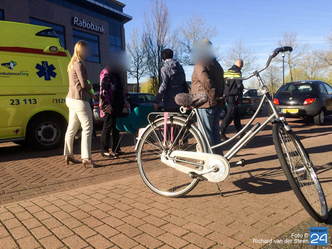 Ongeval Burgemeester Hobusstraat Nederweert--3Donderdagmorgen is een auto in botsing gekomen met een fietsster op de Burgemeester Hobusstraat in Nederweert. De oudere mevrouw werd door de spiegel van de auto aangetikt en kwam lelijk ten val. In de straat stond volgens omstanders op het moment van het ongeval ook een vrachtwagen waardoor het wat smal was.