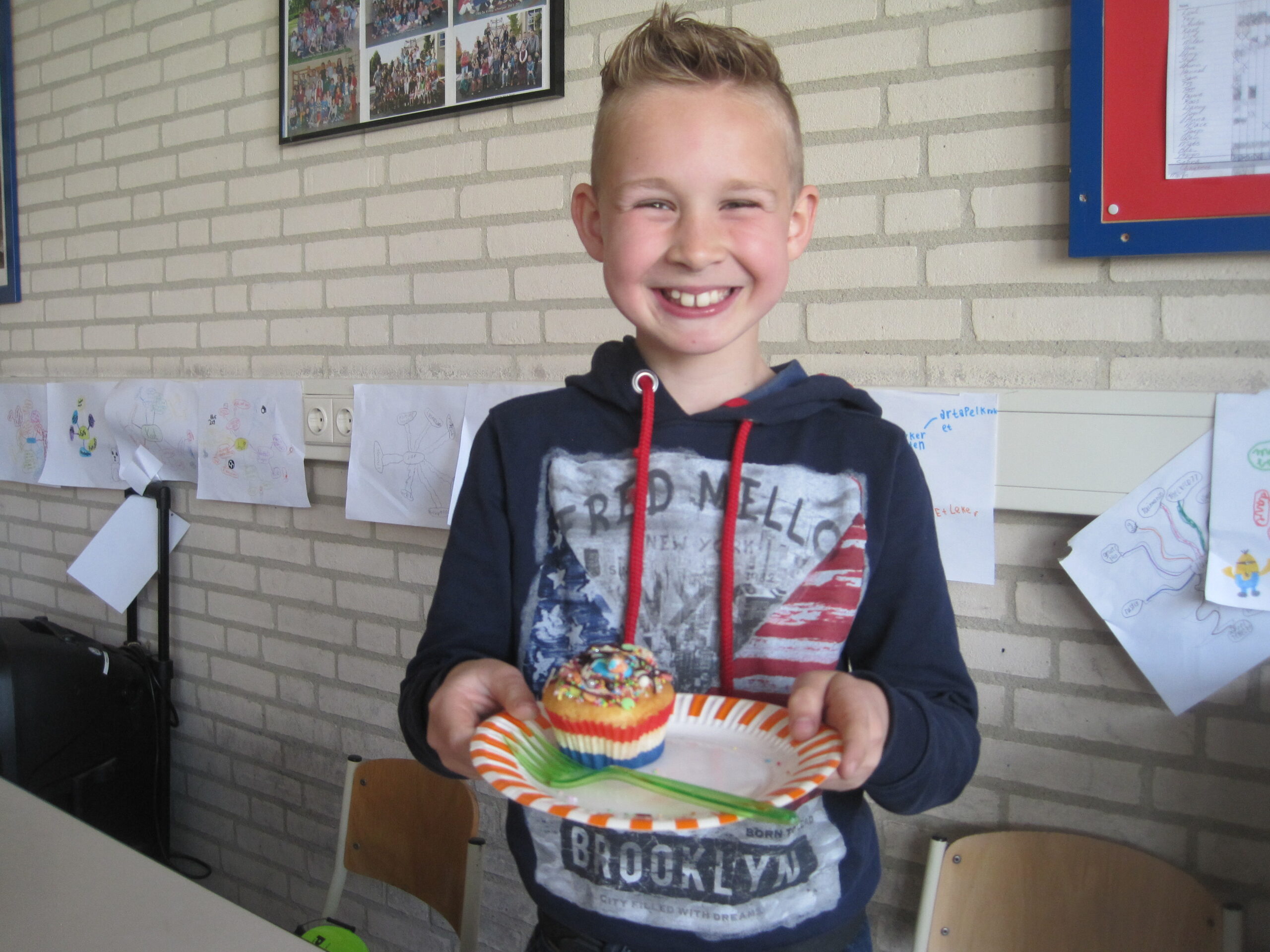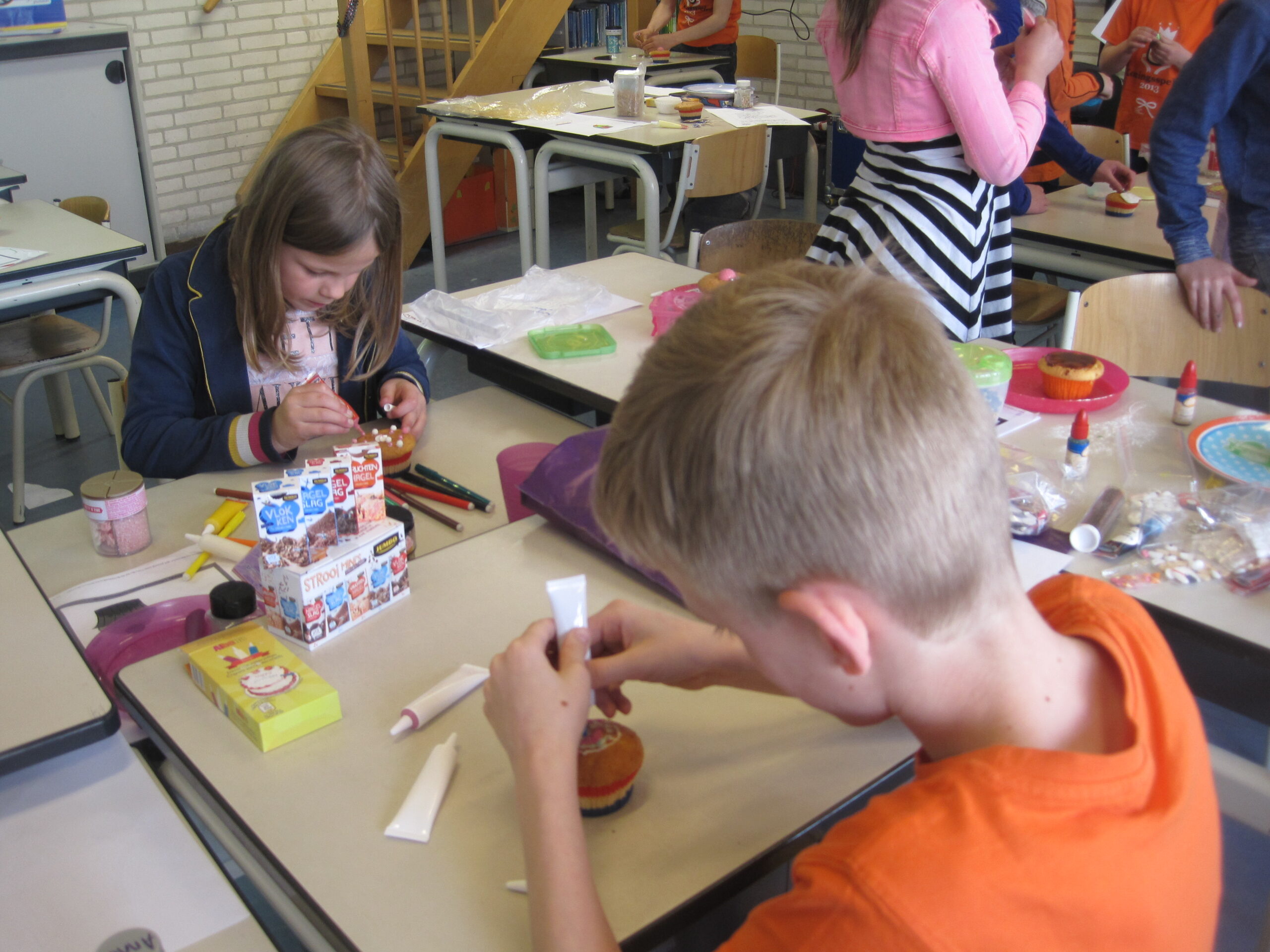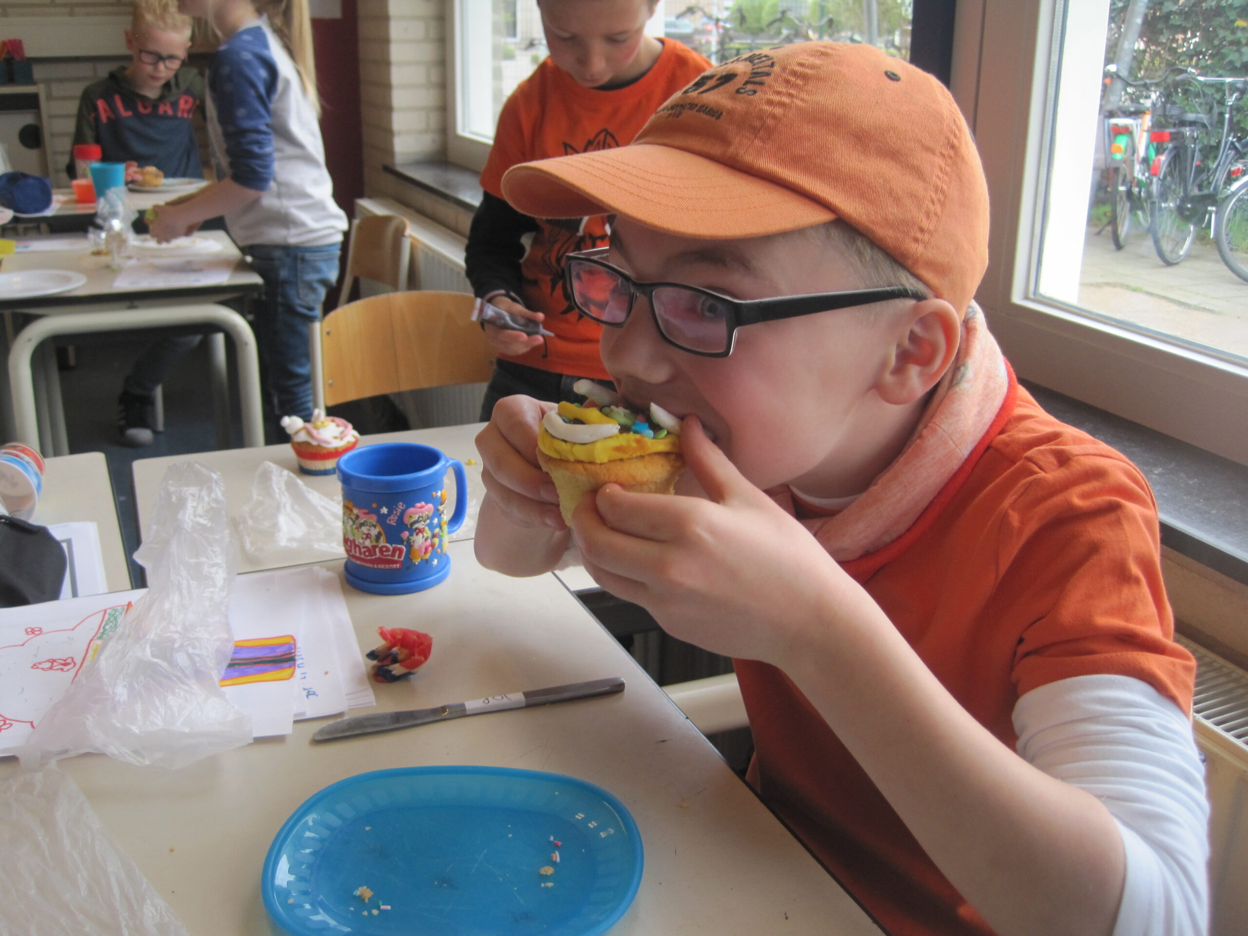 Elke groep heeft in de ochtend zelf cupcakes gebakken en versierd. Er zijn zelfs diverse lesactiviteiten gekoppeld aan de talenten van kinderen in het kader van onderwijsconcept meervoudige intelligentie. Bijvoorbeeld “Rekenknap“, in een bakrecept heb je te maken met inhoudsmaten, moet je ingrediënten afwegen of een verhoudingstabel gebruiken. Of bij “Taalknap” kun je denken aan een recept schrijven. Bij “Beeldknap” kun je het recept tekenen i.p.v. schrijven. Zo kan iedereen zijn eigen talent inzetten!