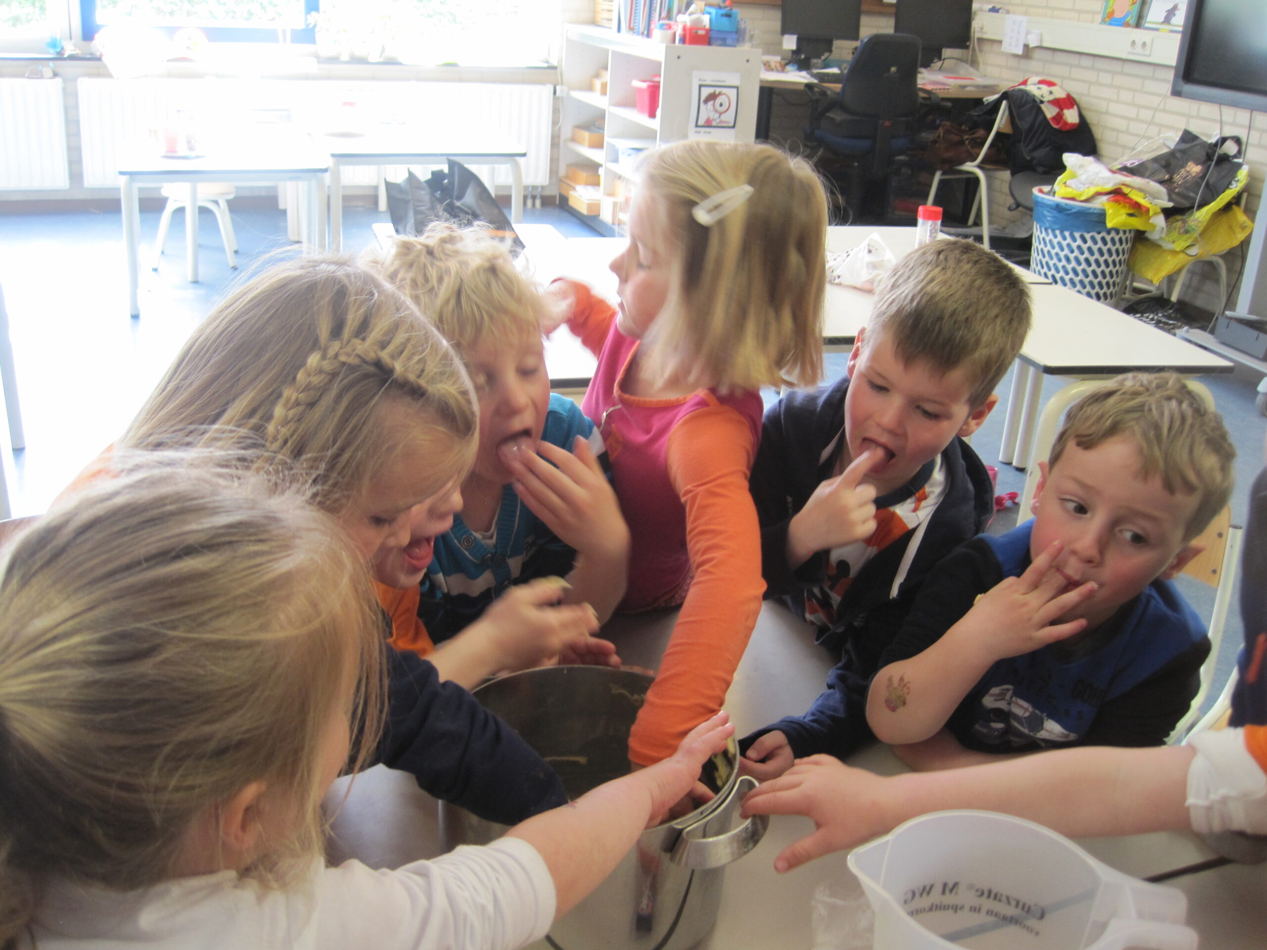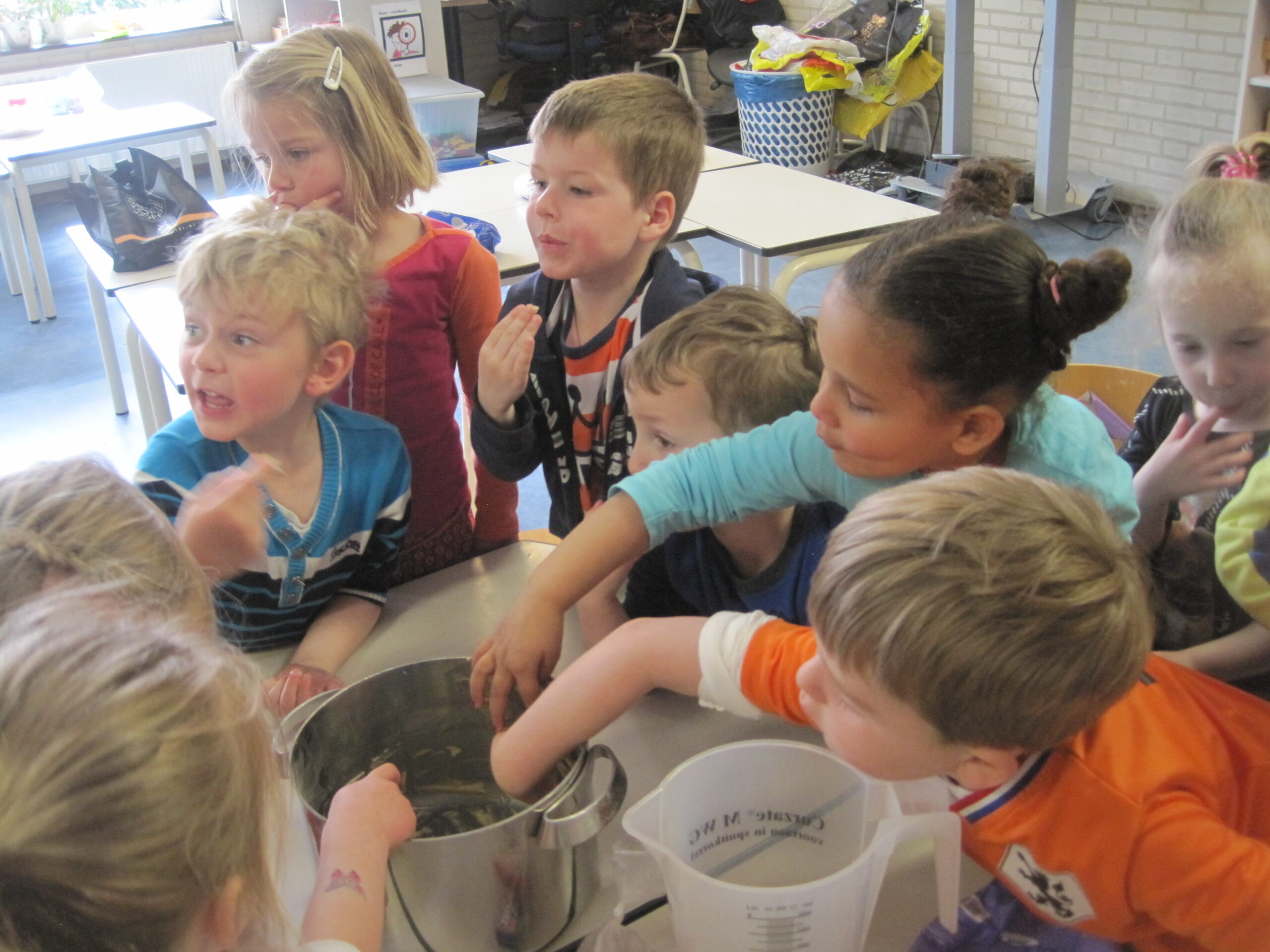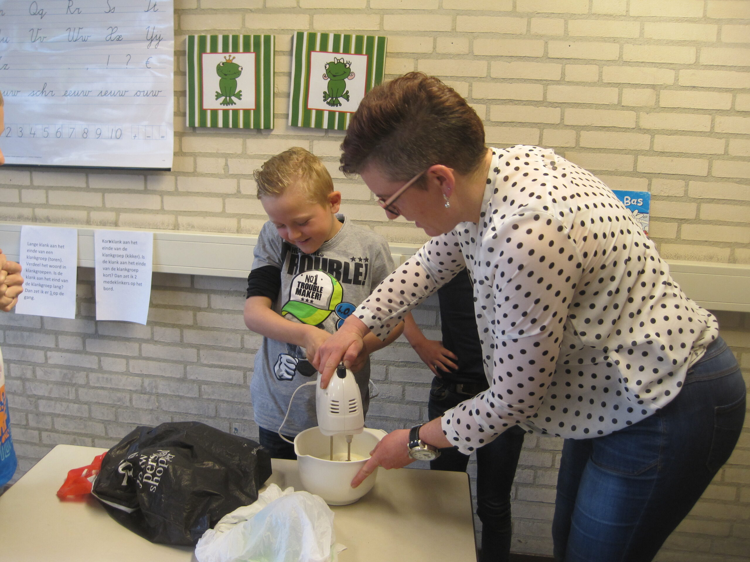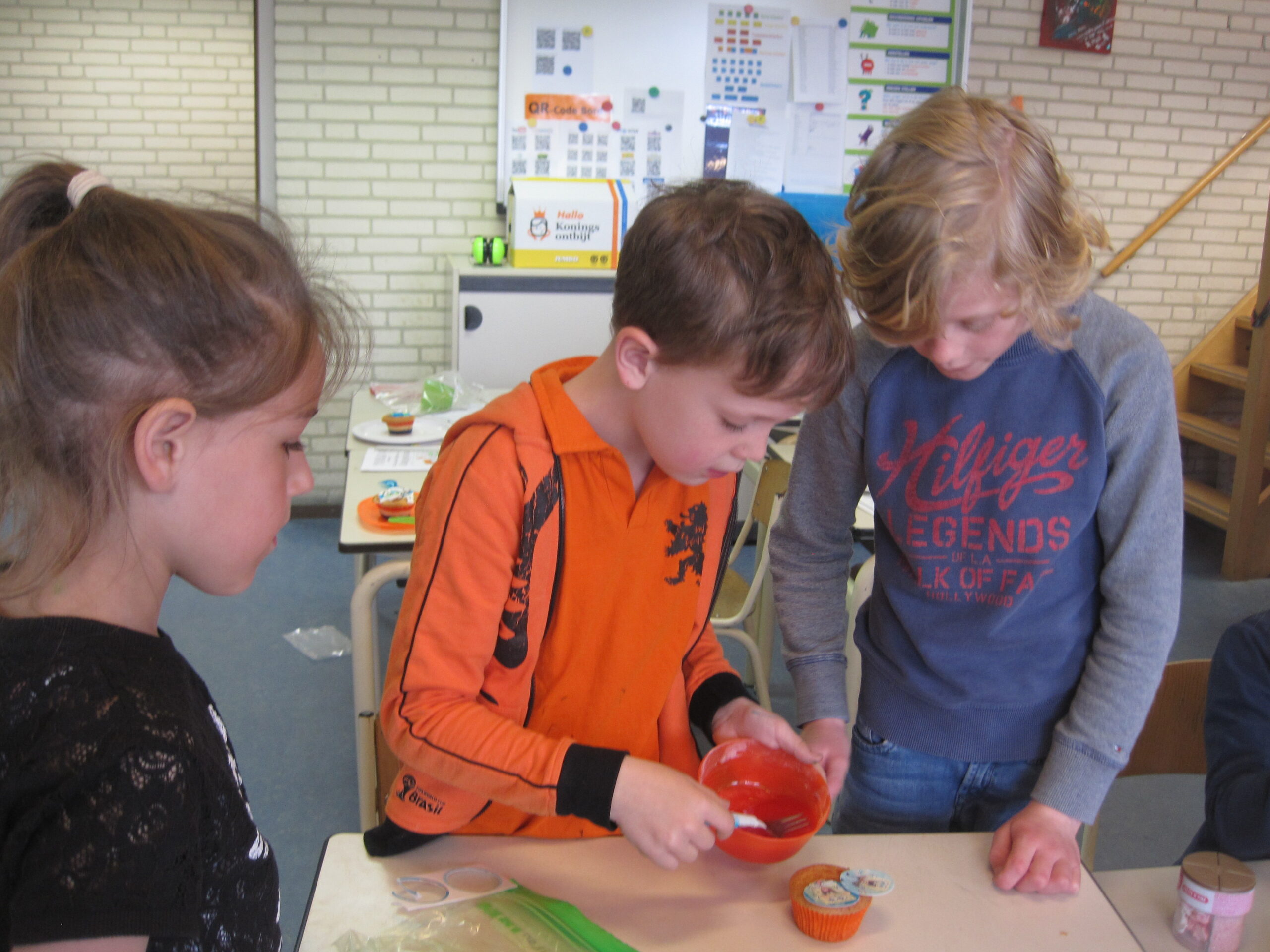 Elke groep heeft in de ochtend zelf cupcakes gebakken en versierd. Er zijn zelfs diverse lesactiviteiten gekoppeld aan de talenten van kinderen in het kader van onderwijsconcept meervoudige intelligentie. Bijvoorbeeld “Rekenknap“, in een bakrecept heb je te maken met inhoudsmaten, moet je ingrediënten afwegen of een verhoudingstabel gebruiken. Of bij “Taalknap” kun je denken aan een recept schrijven. Bij “Beeldknap” kun je het recept tekenen i.p.v. schrijven. Zo kan iedereen zijn eigen talent inzetten!