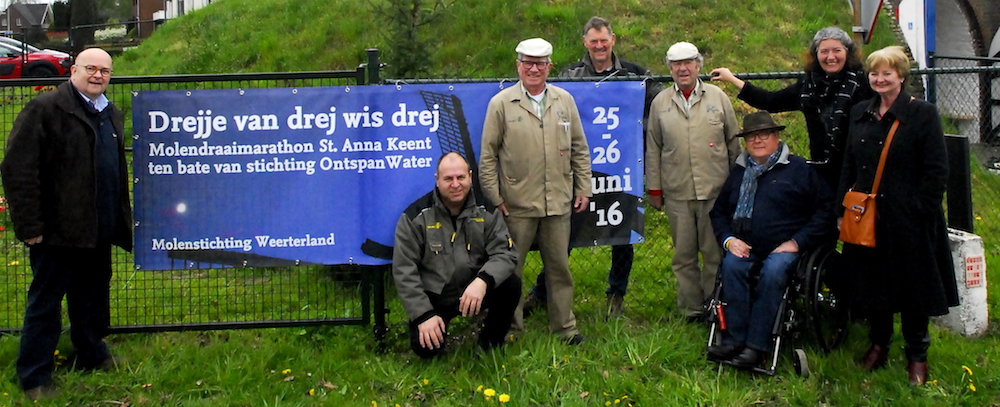 Comité MolenmarathonDe vrijwillige molenaars, molengidsen en molenklussers van de Sint Annamolen van Keent van Molenstichting Weerterland hebben een evenement op stapel staan. Als vrijwilligers gaan ze 24 uur ononderbroken met de Sint Annamolen van Keent draaien. Met deze molenmarathon willen ze geld bijeenbrengen ten bate van Stichting OntspanWater.