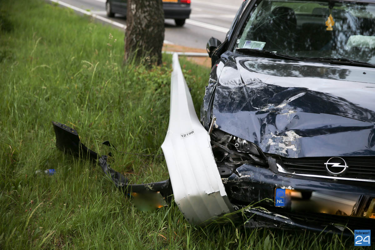 Eén auto kwam vanuit Nederweert en de andere auto kwam vanaf de afrit A2. Waarschijnlijk heeft één van beide door rood licht gereden. De auto vanuit Nederweert reed letterlijk de voorkant af van de auto die vanaf de A2 kwam. Daarna heeft hij een lantaarnpaal uit de grond gereden die dubbelsloeg om zijn auto. De bestuurder raakte niet gewond maar zal morgen waarschijnlijk wel flink spierpijn hebben.
