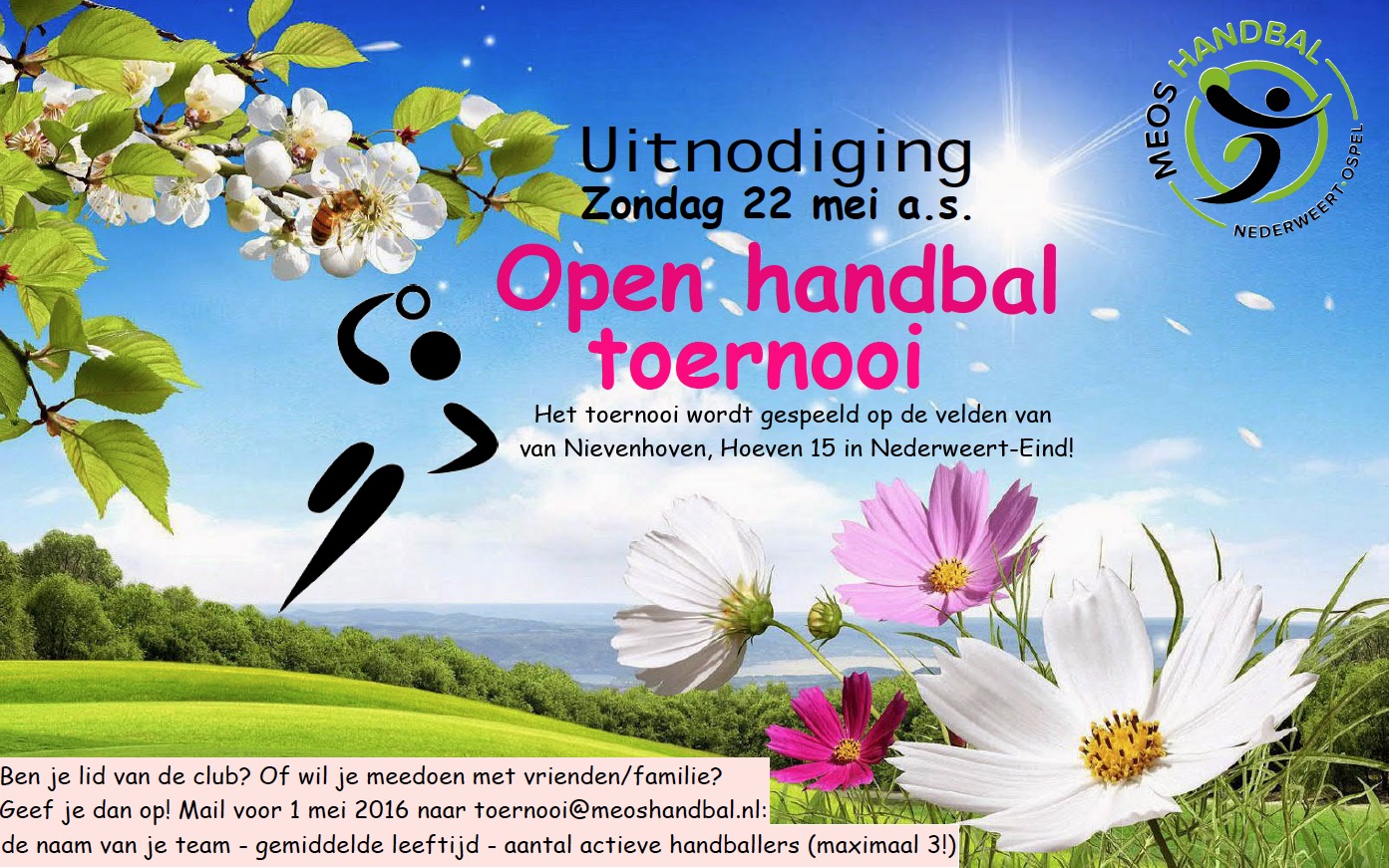 Het MEOS handbaltoernooi staat weer voor de deur en wel op zondag 22 mei. De organisatie is volop bezig met de laatste voorbereidingen en hoopt net als vorig jaar weer veel teams te mogen verwelkomen. Het toernooi wordt gespeeld op de velden van van Nieuwenhoven aan Hoeven 15 in Nederweert-Eind.