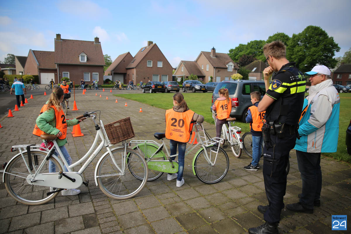 Na de proef met slalom, smalle doorgang en een remproef begonnen de kinderen aan hun Praktisch verkeersexamen door de straten Nederweert. Vanmorgen vertrokken de kids vanaf het St. Rochusplein op Budschop. Wijkagent Joost-Jelmer Kasper was aanwezig om te kijken of de kinderen het allemaal wel goed deden. Hij deed zelf ook de fietsproef, en dat viel nog niet mee. Of hadden ze de pionnen iets dichter bij elkaar gezet?