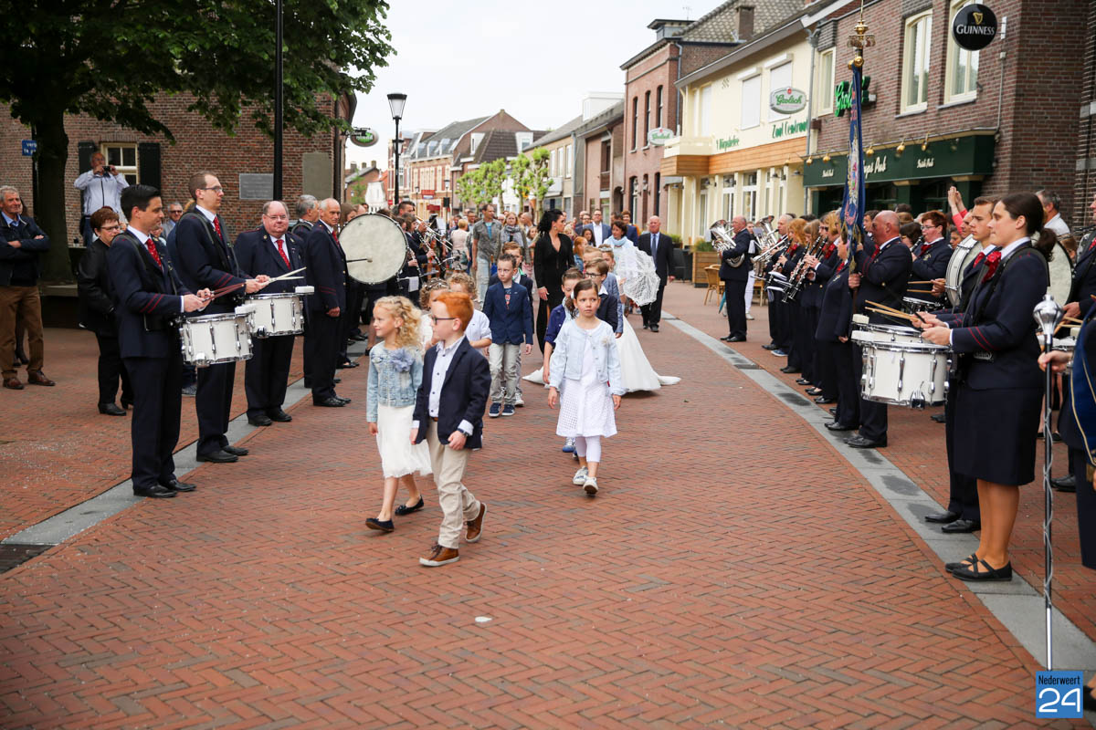 Communicanten Nederweert 2016-6Zondagmorgen liepen de 12 communicanten van Basisschool De Klimop en De Bongerd uit Nederweert vanaf het Raadhuisplein naar de St Lambertuskerk in Nederweert.