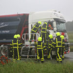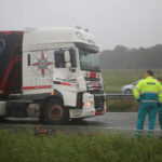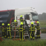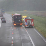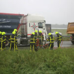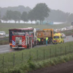 De brandweer heeft de persoon bevrijd waarna hij met lichte verwondingen naar het ziekenhuis is gebracht. Het voorval gebeurde rond acht uur, net in de spits, en dus ontstond er achter het ongeval een lange file. Er is maar één rij strook open.
