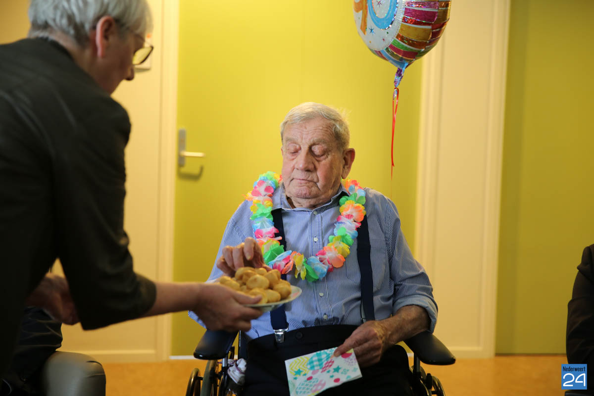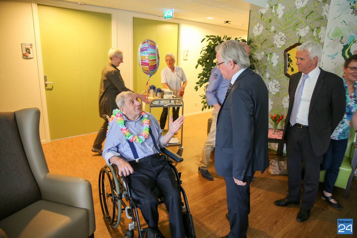 Jac Coumans Nederweert 90 jaar-2In de gezamenlijke ruimte van zorgcentrum St. Joseph vierde Jac Coumans vandaag zijn 90e verjaardag. Namens het gemeentebestuur kwamen wethouders Geraats en Houtman de jarige feliciteren met deze bijzondere leeftijd. Met een heerlijke kop koffie en een paar roomsoezen werd er geproost op zijn verjaardag.