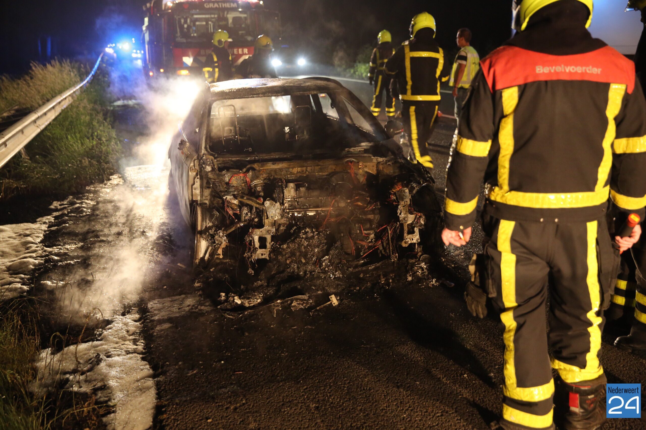 In de nacht van donderdag op vrijdag is een auto volledig uitgebrand op de A2 tussen afslag Kelpen-Oler en Grathem.