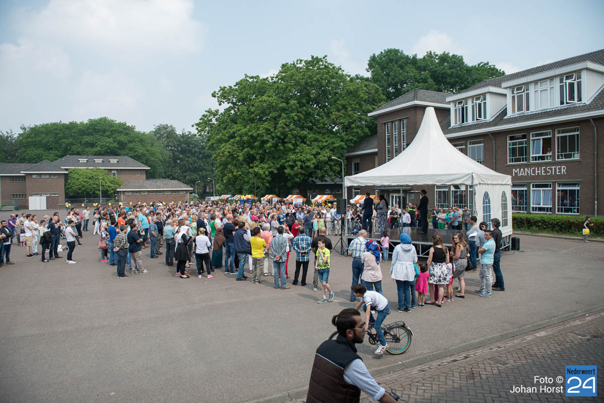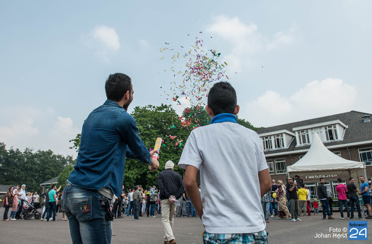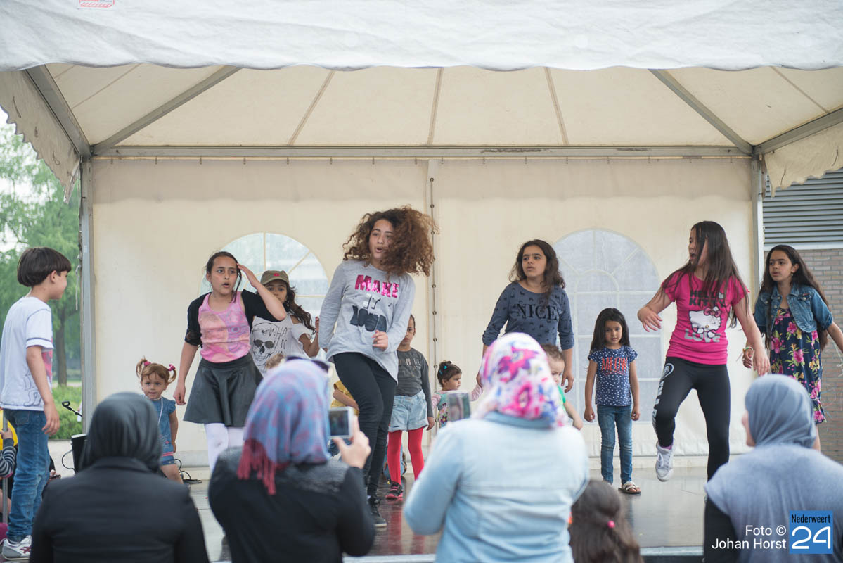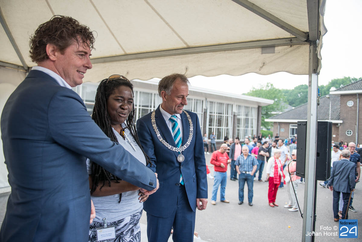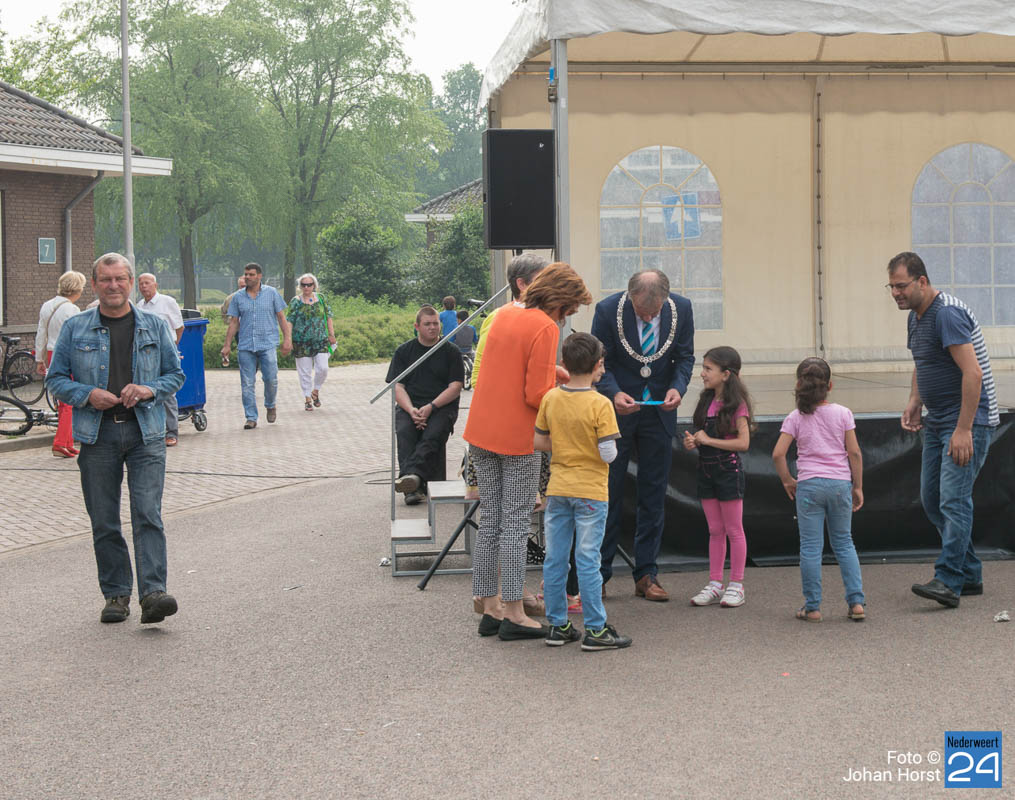AZC Weert open dag-14Zaterdagmiddag was de officiële opening en open dag van het AZC Weert. Iedereen die eens een kijkje wilde nemen in het asielzoekerscentrum was van harte welkom. Anton Poel, namens stichting Horne Qaurtier, heeft samen met burgmeester Heijmans de dag officieel geopend.