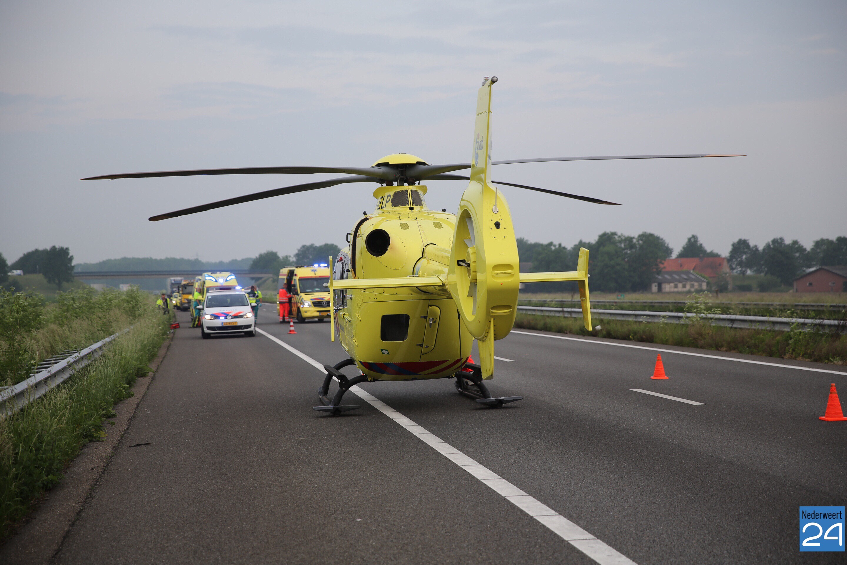 Vanwege de ernst van de verwondingen is een traumahelikopter opgeroepen, die op de snelweg is geland. De weg is volledig afgesloten voor het verkeer tussen afslag Weert-Noord en afslag Nederweert richting Maastricht. De oorzaak van het ongeval is nog niet bekend. De politie stelt een onderzoek in en dit zal nog enkele uren in beslag nemen. Het verkeer wordt tot die tijd omgeleid via de Eindhovenseweg en de Ringbaan Noord bij Weert.
