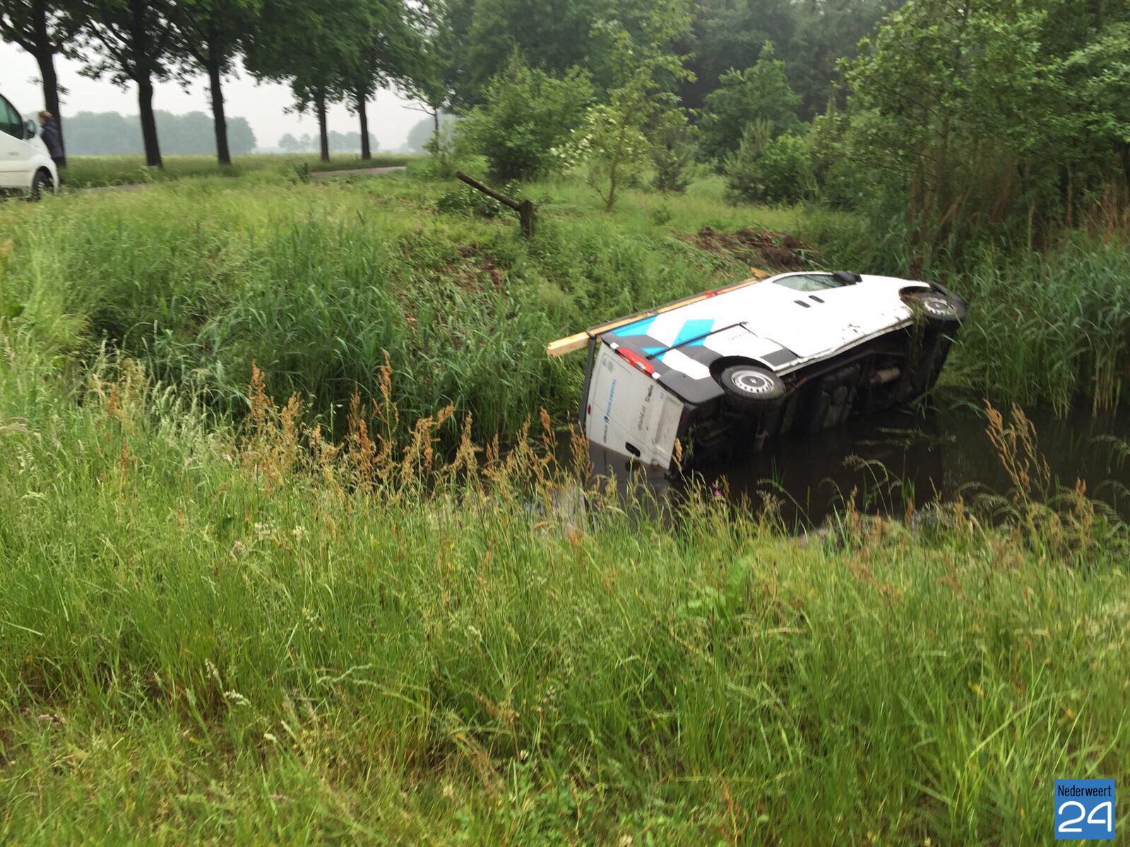Maandagmiddag is een bestelauto uit de bocht gevlogen en op z’n kant in een afwateringskanaal tot stilstand gekomen. Het ongeval gebeurde tussen Nederweert-Eind en Heibloem.
