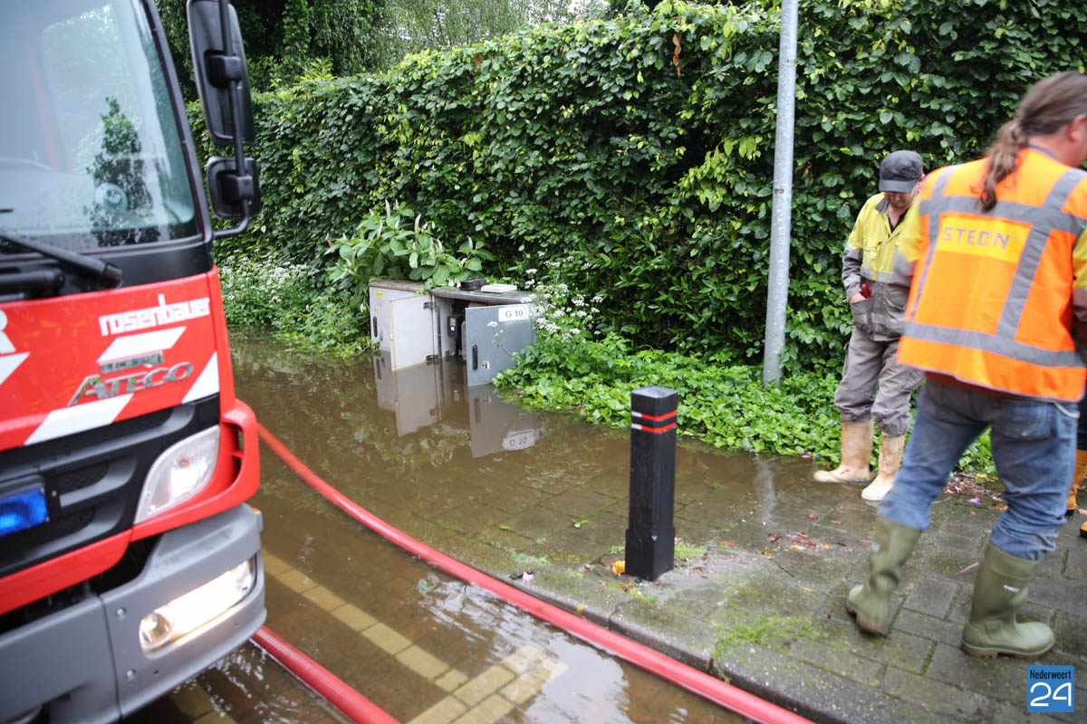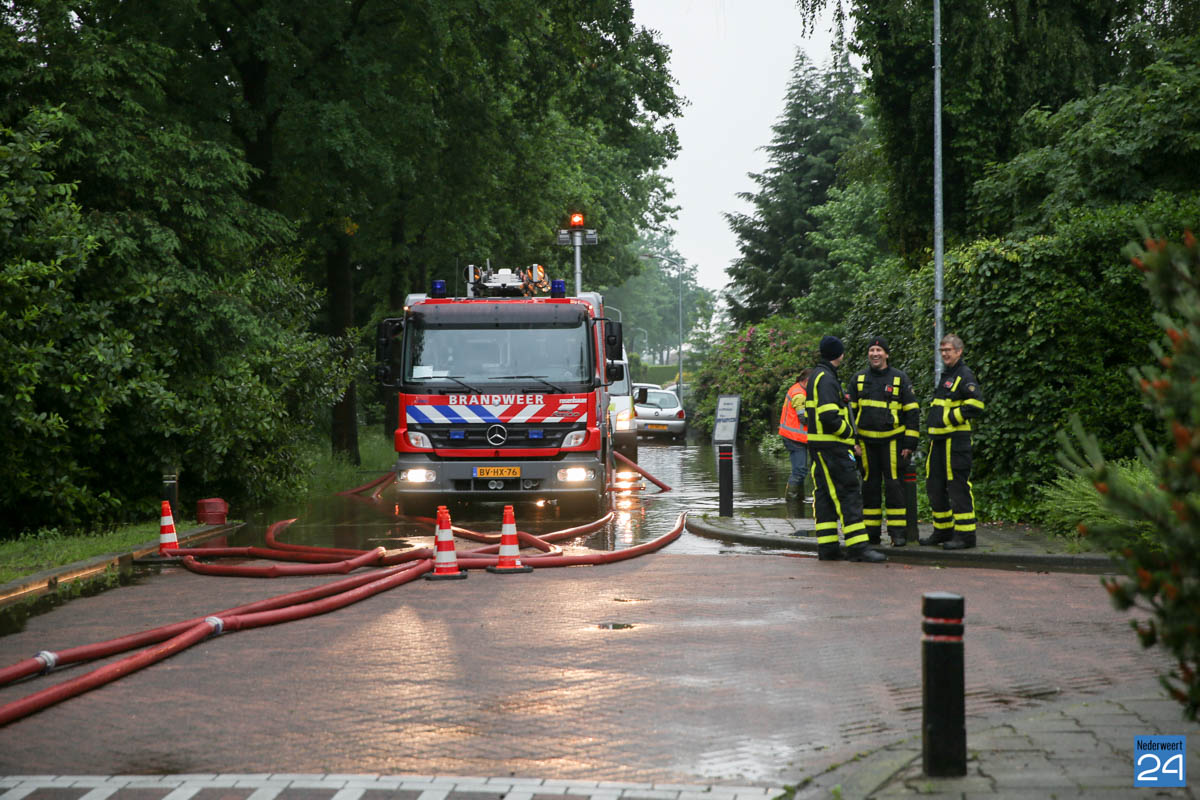 Wateroverlast Weert-1In Weert is de afgelopen avond en nacht heel veel regen gevallen. Als gevolg daarvan zijn er veel ondergelopen kelders en straten. Met name in de wijken Boshoven, Centrum-Noord, Graswinkel en het Bungalowpark is er veel overlast. Op Boshoven is als gevolg van kortsluiting een gemaal uitgevallen waardoor er in de wijk nog lang veel water stond. De brandweer van Nederweert heeft afgelopen nacht en ochtend in Weert meegeholpen om het water weg te pompen.