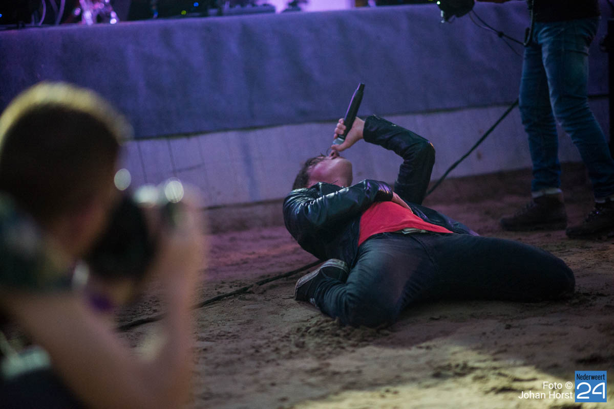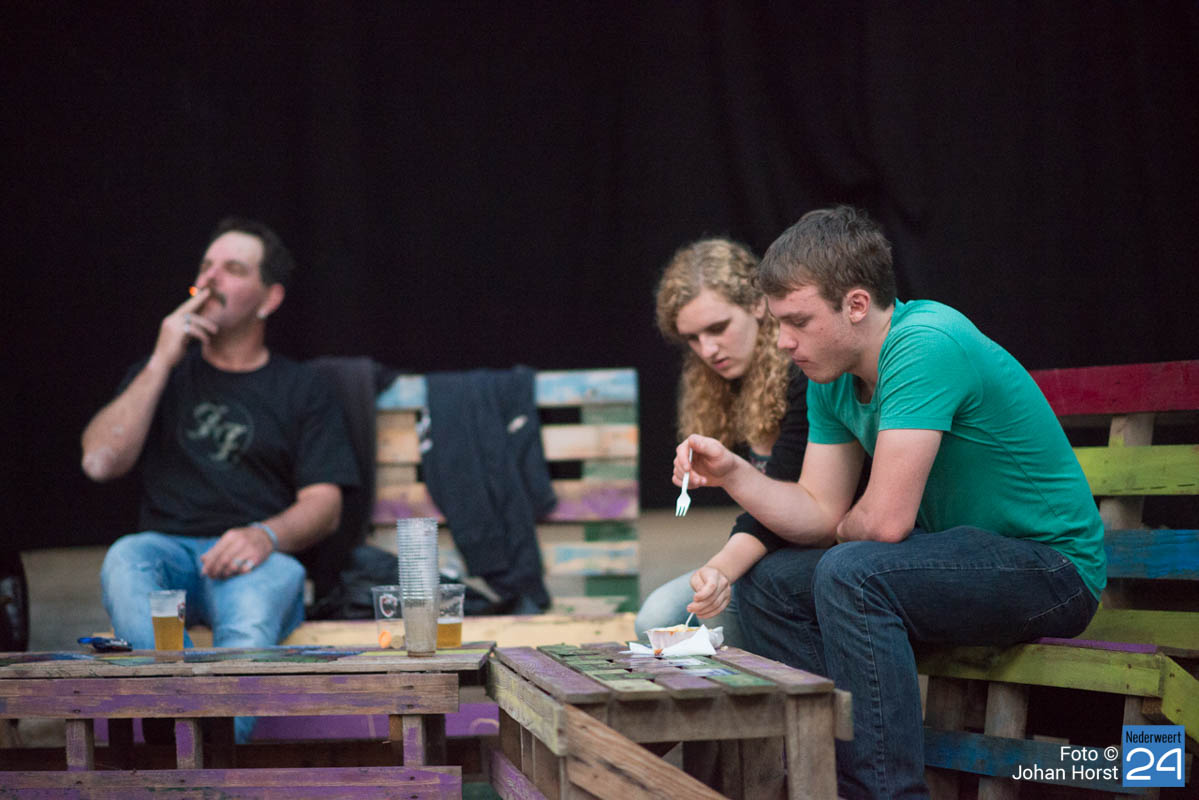 Rascalfest 2016 door Johan Horst-1Gisteravond was het dan eindelijk zo ver. Rond de klok van half acht klonken de eerste muziekklanken in de manege op Budschop voor de 3e editie van het RascalFest. Een vreemde locatie? Nee, helemaal niet! Manege De Kraal biedt ontzettend veel mogelijkheden. Een bestaande, overdekte locatie, op een verhard terrein waar alle voorzieningen aanwezig zijn. Nog wat groot voor de rascals, maar met wat doeken is het knus en vooral gezellig ingericht. Hier en daar een bankje en zitje van hout getimmerd en natuurlijk een flink podium.