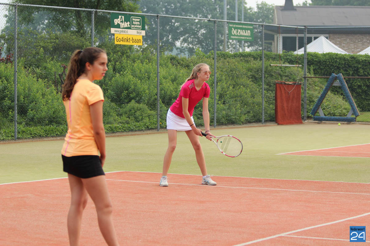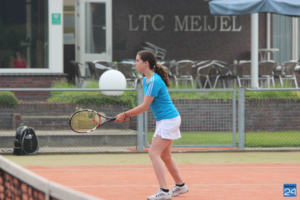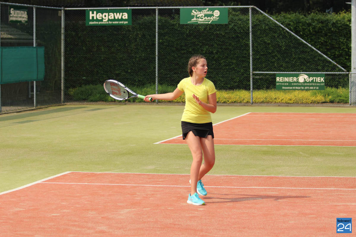 Volgende doelstelling was de dagzege. Daarvoor moesten nog minimaal 2 enkelpartijen worden gewonnen. Renic en Senna waren daar inmiddels mee begonnen. Al snel werd duidelijk dat de Nederweertse trein vandaag niet te stoppen was. Renic speelde zeer sterk en won haar partij overtuigend. Senna daarentegen had een zeer gelijkwaardige tegenstandster getroffen. Met de brandende zon op het hoofd werd dat een echte slijtageslag. Eerste set voor Senna, tweede voor Meijel. Bij Senna was in set drie vervolgens de energie op. Meijel haalde daarmee het dik verdiende eerste puntje binnen.