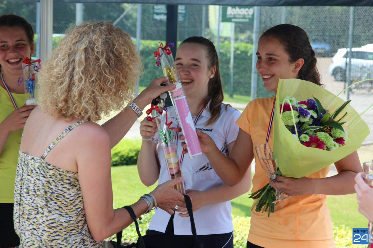 Tot slot gingen Linn en Anouk nog de baan op voor hun enkelpartijen. Voor de toeschouwers was het genieten, want de dames lieten heel mooi tennis zien. Linn bleek als eerste klaar te zijn, en pakte met haar winst het 4e punt voor NTC. De dagzege en dus het ongeslagen kampioenschap was een feit. Tot slot werd Anouk nog even massaal aangemoedigd. Maar dat mocht helaas niet baten. De Meijelse bleek technisch net een maatje te groot. Met een mooie 2-4 overwinning kon er vervolgens begonnen worden aan het kampioensfeest.