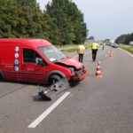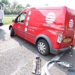 De bestuurder is eerst links langs de middenberm geraakt, de macht over het stuur verloren en rechts de vangrail in gevlogen. De bestuurder had nekklachten en is door het ambulancepersoneel meegenomen naar het ziekenhuis. De bestelbus wordt afgesleept door de berger.