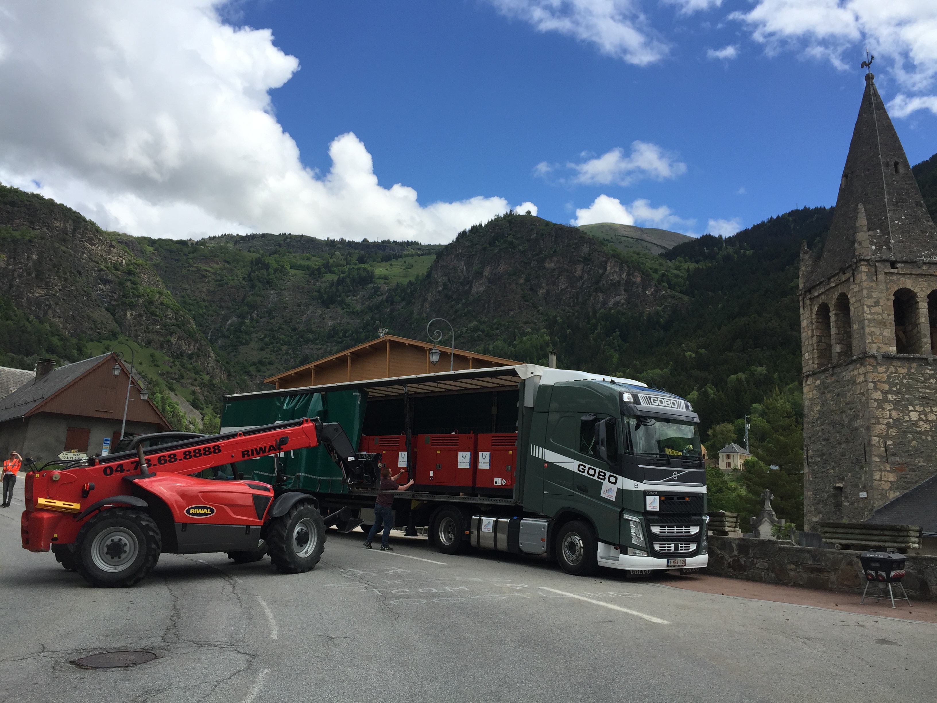 Op vrijdag rond 11:00 vertrekken we met een konvooi van 18 vrachtwagens vanaf de Wildenberg in Weert, met de nodige media-aandacht van o.a. SBS6, L1 en Nederweert24. Na een overnachting in het Franse Langres belanden we zaterdagmiddag bij de voet van de Alpe in het dorp Le Bourg d-Oissans. Vol getoeter rijden we door het dorp waar we met veel gejuich worden ontvangen, en beginnen aansluitend aan de klim. Veel vrijwilligers staan te popelen om met de spullen in de trailers aan de slag te kunnen gaan met opbouwen.