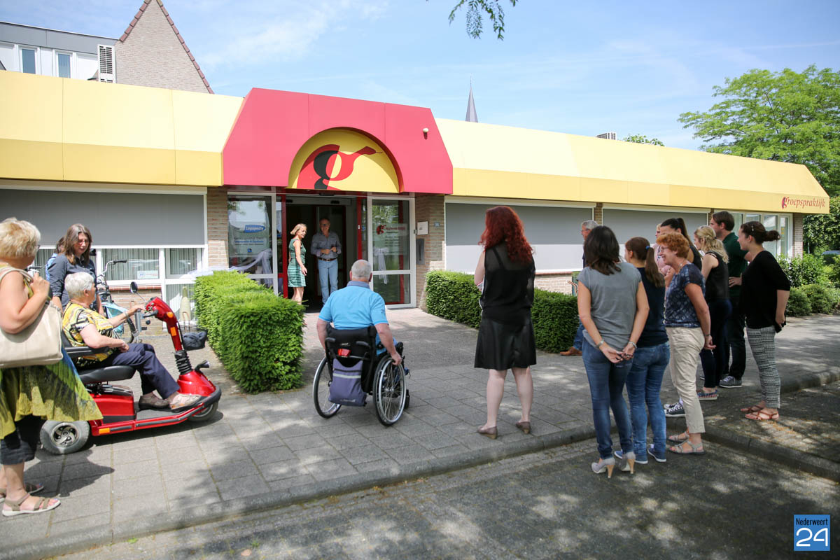 Vrijdagmiddag zijn de schuifdeuren van de huisartsenpraktijk aan de Burgemeester Hobusstraat in Nederweert officieel geopend. Na een kort woordje van Inneke Hussaarts knipten Ceciel Rietjens en Loet Bloemers symbolisch het lint doorknippen waarmee de nieuwe deuren officieel geopend waren.