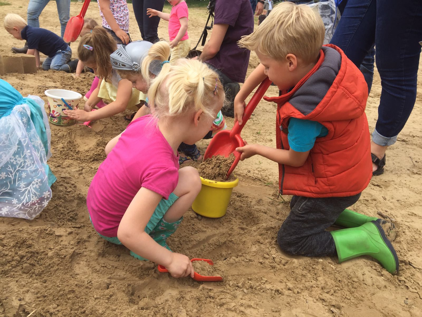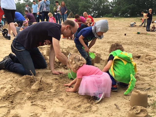 De ochtend begon een beetje treurig. Ridder Joey en Prinses Johanneke waren erg verdrietig omdat hun kasteel vernield was door een boze draak. De kinderen werden gevraagd om speciaal voor het paar een nieuw kasteel te bouwen. Het zand van de houtsberg was zeer speciaal, hier konden ze een perfect zandkastelen mee maken. Toen deze kastelen klaar waren was iedereen blij en werd spontaan de drakendans uitgevoerd.