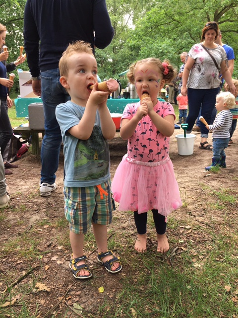 De oudercommissie zorgde voor iets lekkers tijdens de activiteit. Toen het tijd was om naar huis te gaan begon het te regenen.