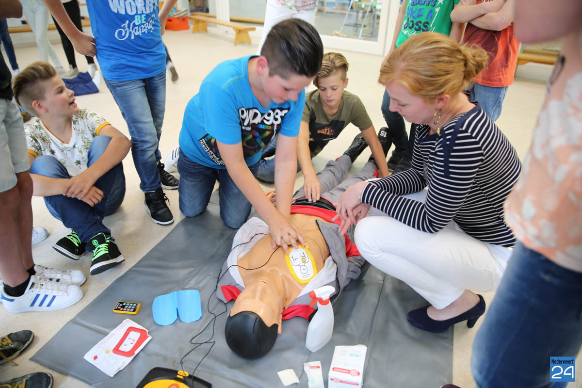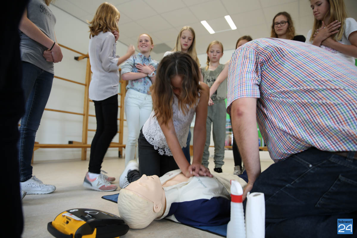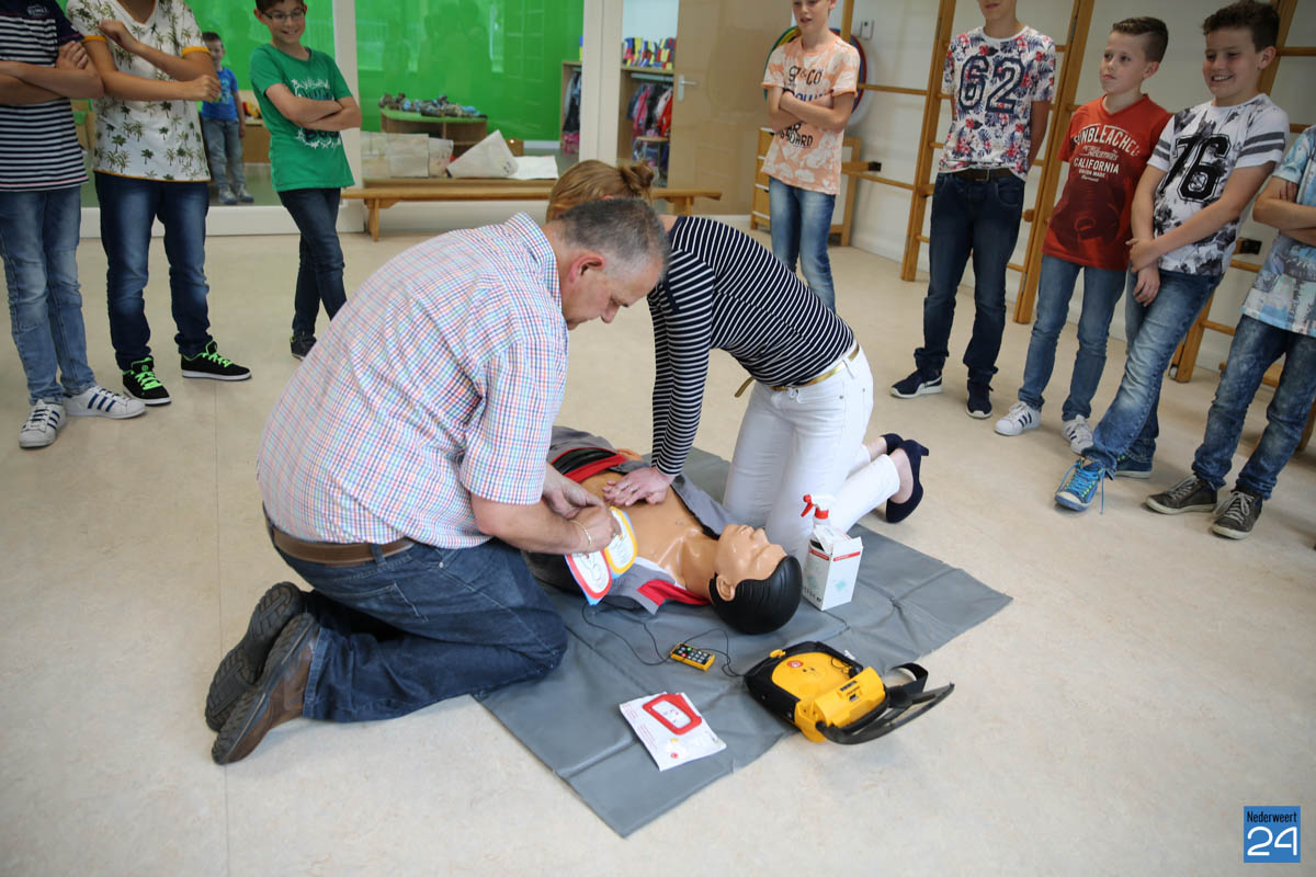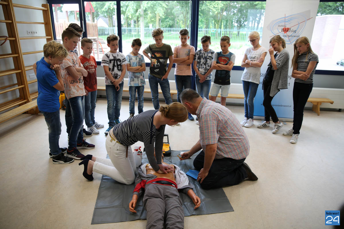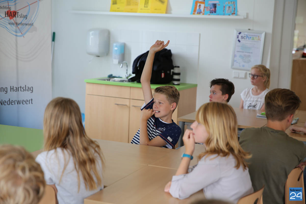 Tijdens een biologieles in groep 8 werd het hart en de bloedsomloop behandeld. De dochter van Paulien vertelde toen het verhaal van haar moeder. Dit bracht de school op het idee om haar uit te nodigen en wat meer te laten vertellen. Vandaag heeft Paulien dit samen met Antoine gedaan. Kort werd de ervaring van toen besproken, maar daarna vooral over hoe Hartslag voor Nederweert in zijn werk gaat. Hoe wordt het netwerk van vrijwilligers gewaarschuwd als iemand een hartstilstand heeft? Hoeveel vrijwilligers zijn er? Wat moet je doen als je ziet dat iemand bewusteloos is? Wat moet je vooral niet doen en wat moet er gebeuren als iemand een hartstilstand krijgt. Daarna mochten de kinderen zelf ervaren hoe het is om te “reanimeren”. In de gymzaal van de Schrank lagen een twee poppen waar iedereen een keer op kon oefenen.