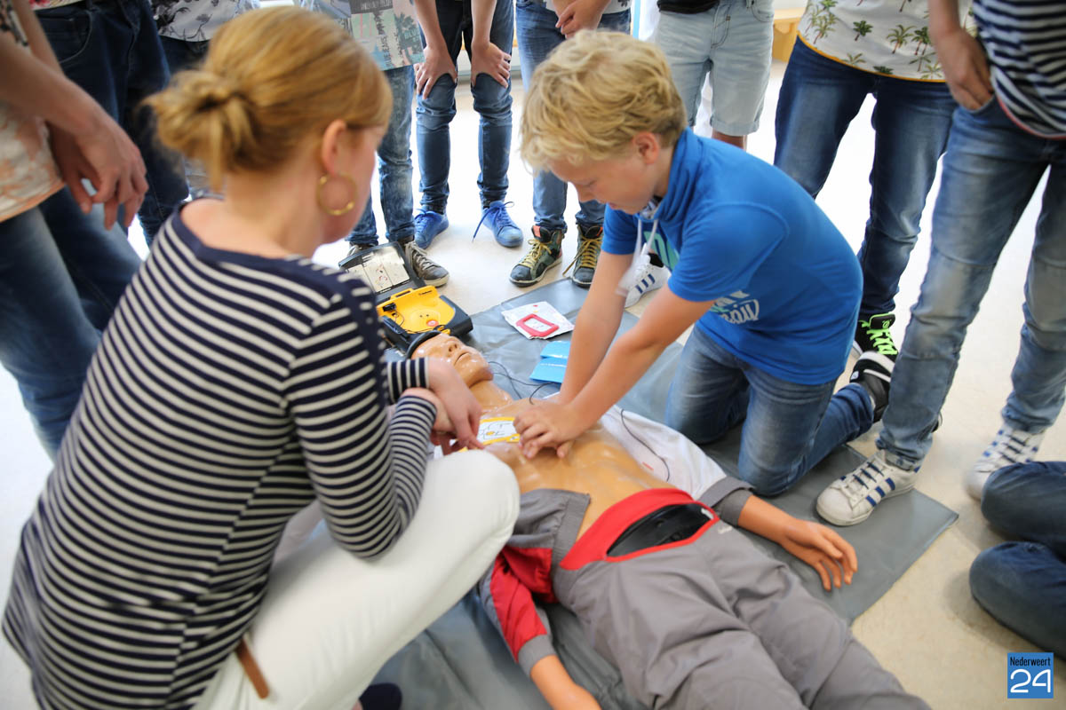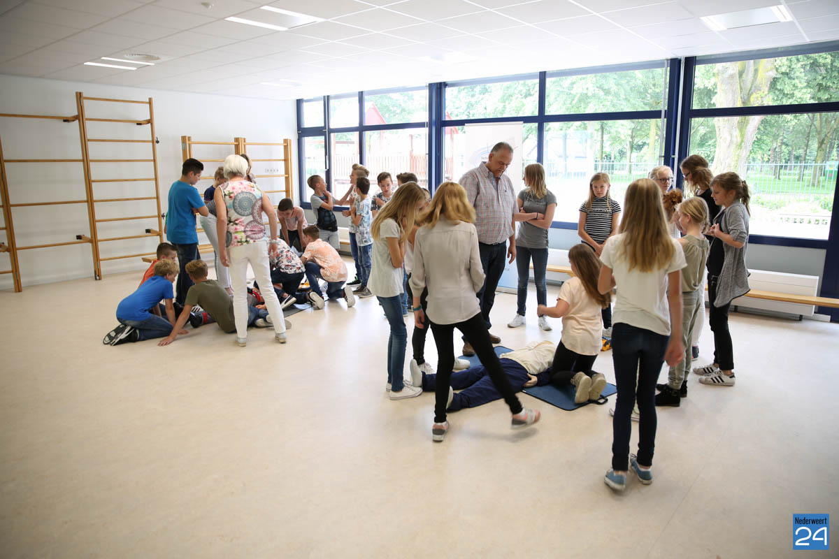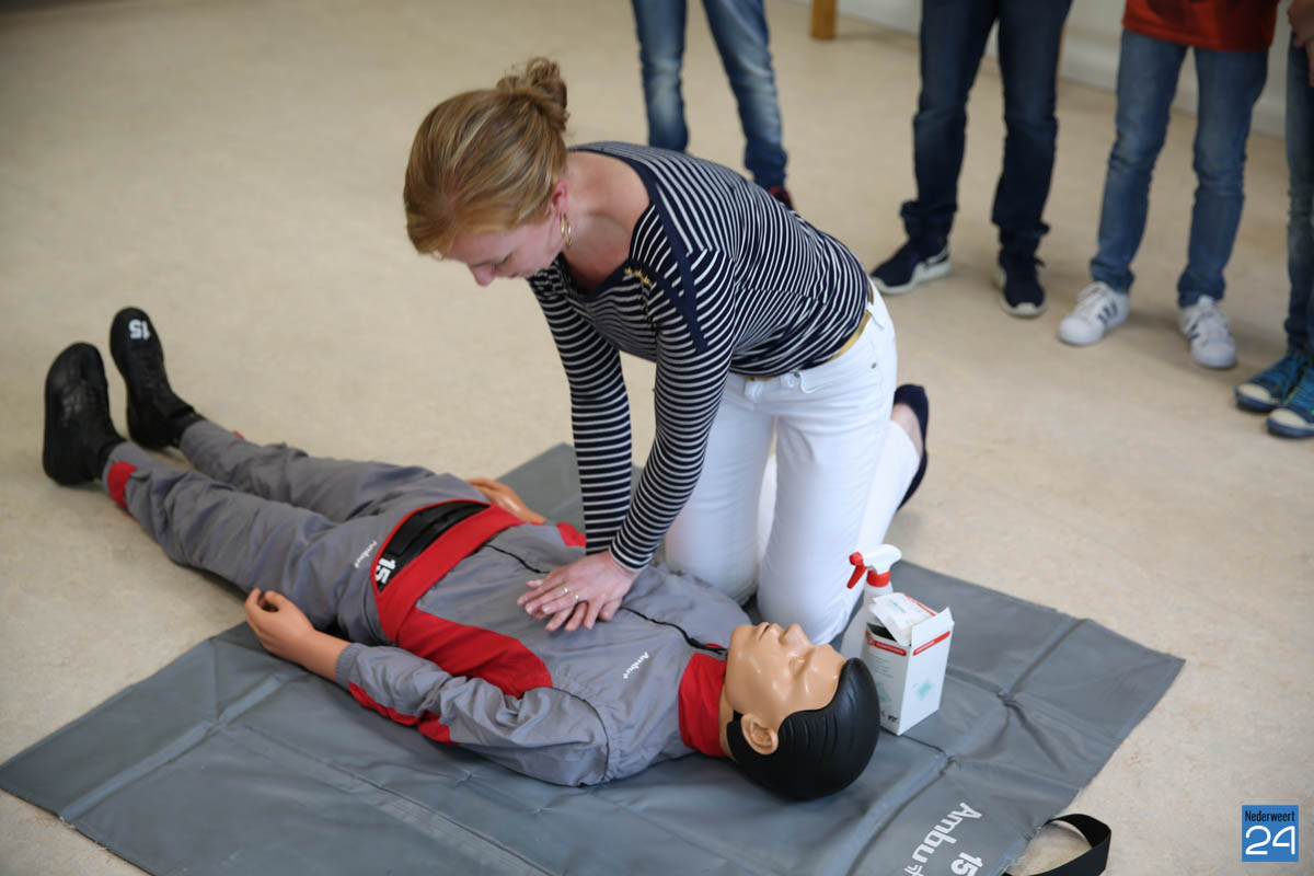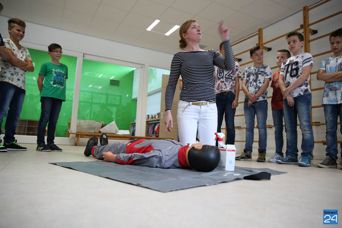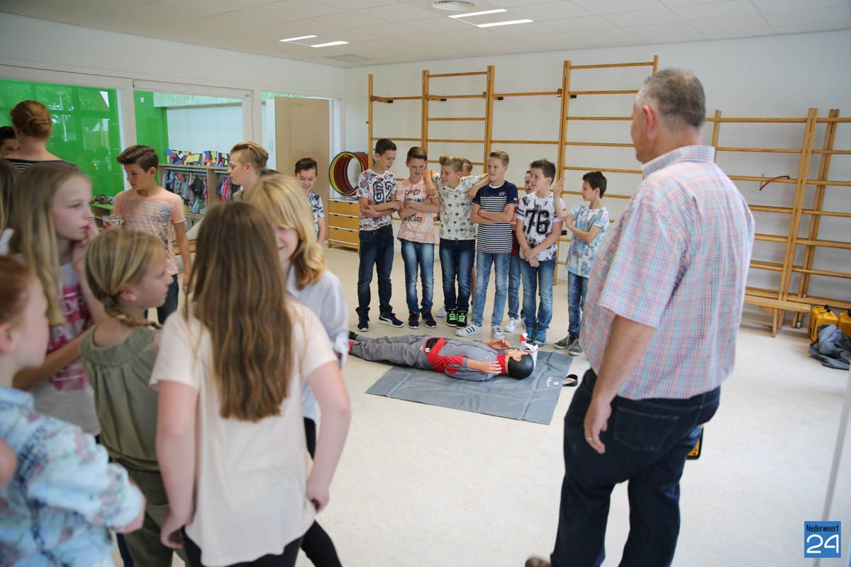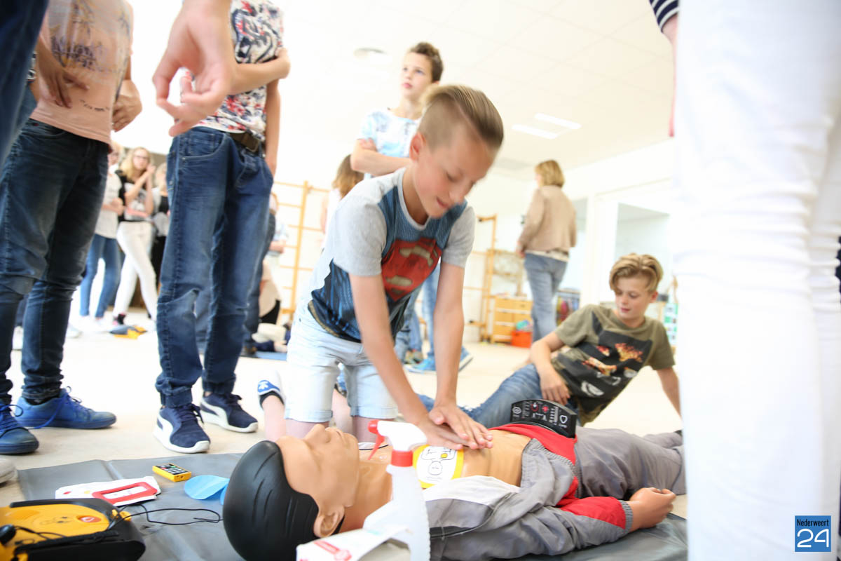 Tijdens een biologieles in groep 8 werd het hart en de bloedsomloop behandeld. De dochter van Paulien vertelde toen het verhaal van haar moeder. Dit bracht de school op het idee om haar uit te nodigen en wat meer te laten vertellen. Vandaag heeft Paulien dit samen met Antoine gedaan. Kort werd de ervaring van toen besproken, maar daarna vooral over hoe Hartslag voor Nederweert in zijn werk gaat. Hoe wordt het netwerk van vrijwilligers gewaarschuwd als iemand een hartstilstand heeft? Hoeveel vrijwilligers zijn er? Wat moet je doen als je ziet dat iemand bewusteloos is? Wat moet je vooral niet doen en wat moet er gebeuren als iemand een hartstilstand krijgt. Daarna mochten de kinderen zelf ervaren hoe het is om te “reanimeren”. In de gymzaal van de Schrank lagen een twee poppen waar iedereen een keer op kon oefenen.