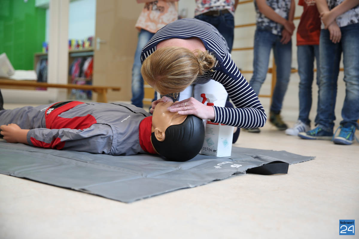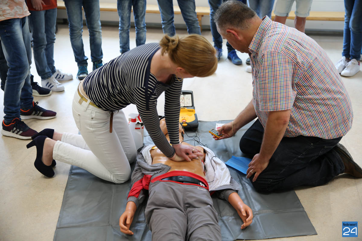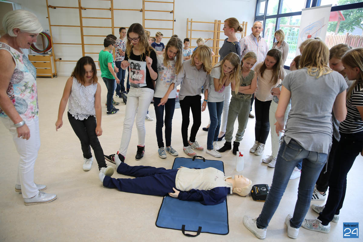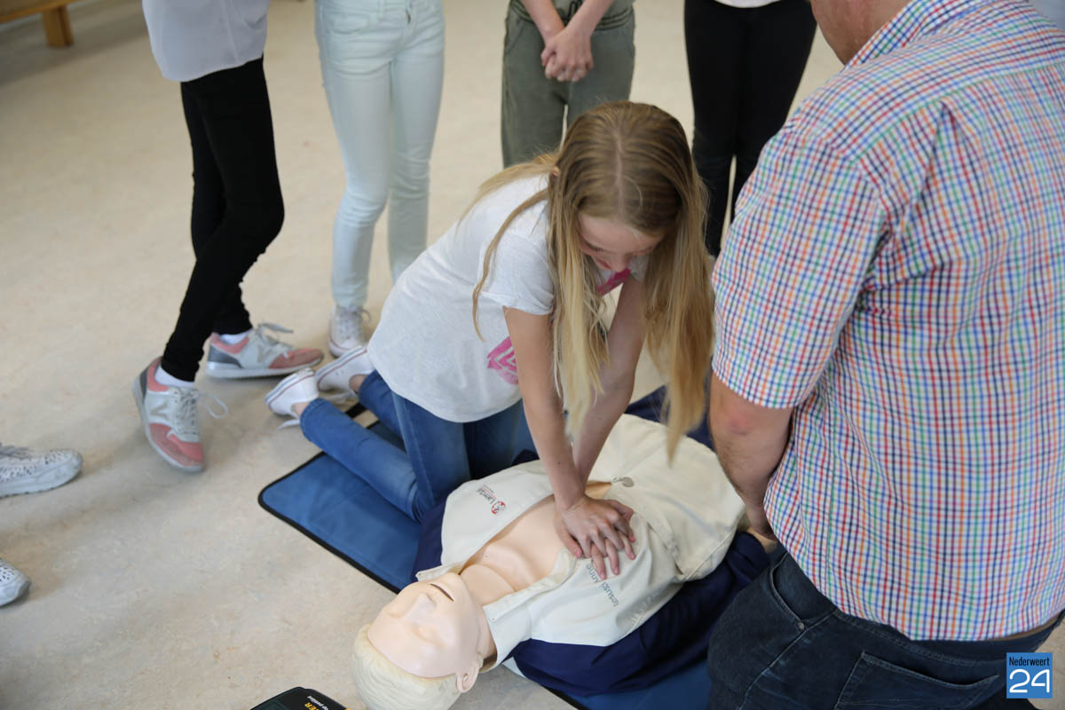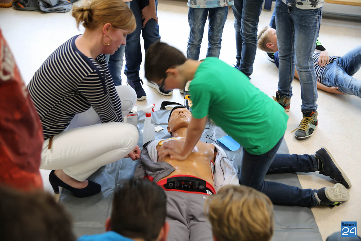 Tijdens een biologieles in groep 8 werd het hart en de bloedsomloop behandeld. De dochter van Paulien vertelde toen het verhaal van haar moeder. Dit bracht de school op het idee om haar uit te nodigen en wat meer te laten vertellen. Vandaag heeft Paulien dit samen met Antoine gedaan. Kort werd de ervaring van toen besproken, maar daarna vooral over hoe Hartslag voor Nederweert in zijn werk gaat. Hoe wordt het netwerk van vrijwilligers gewaarschuwd als iemand een hartstilstand heeft? Hoeveel vrijwilligers zijn er? Wat moet je doen als je ziet dat iemand bewusteloos is? Wat moet je vooral niet doen en wat moet er gebeuren als iemand een hartstilstand krijgt. Daarna mochten de kinderen zelf ervaren hoe het is om te “reanimeren”. In de gymzaal van de Schrank lagen een twee poppen waar iedereen een keer op kon oefenen.