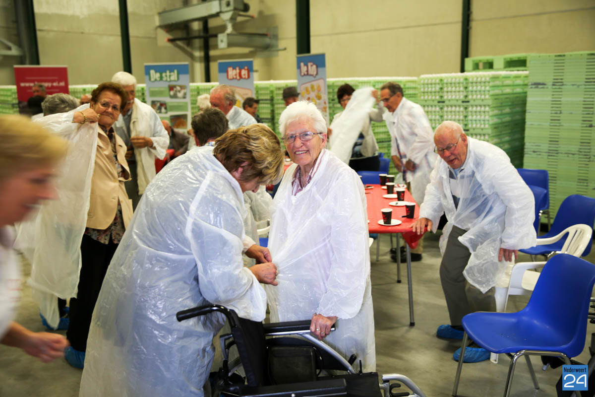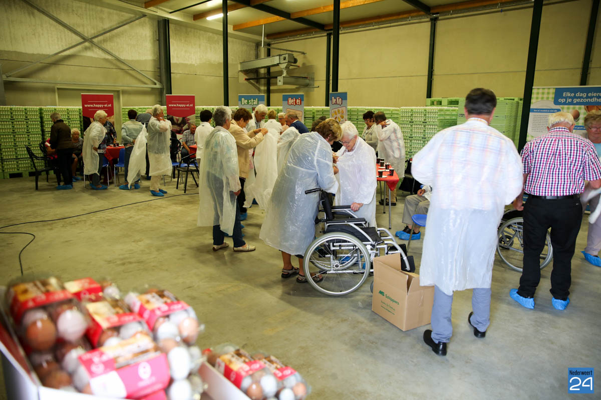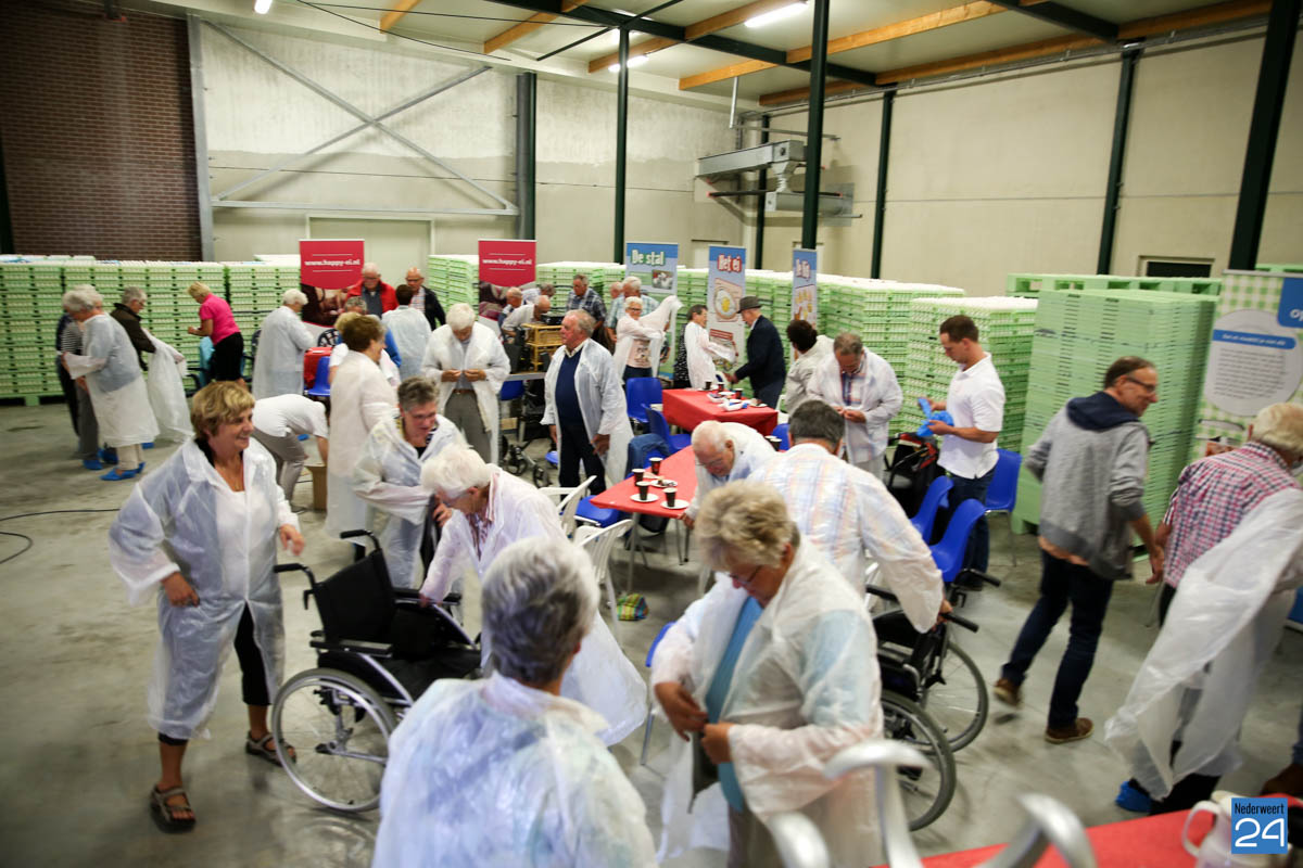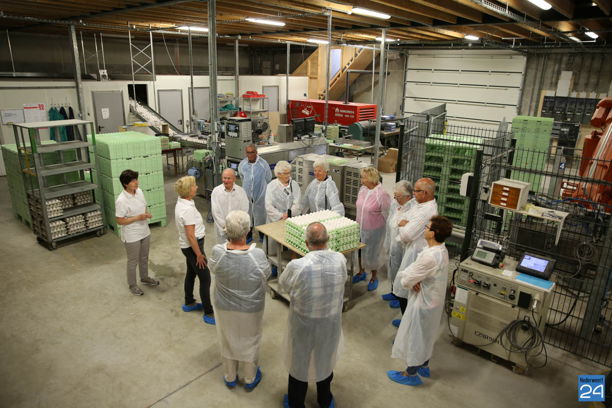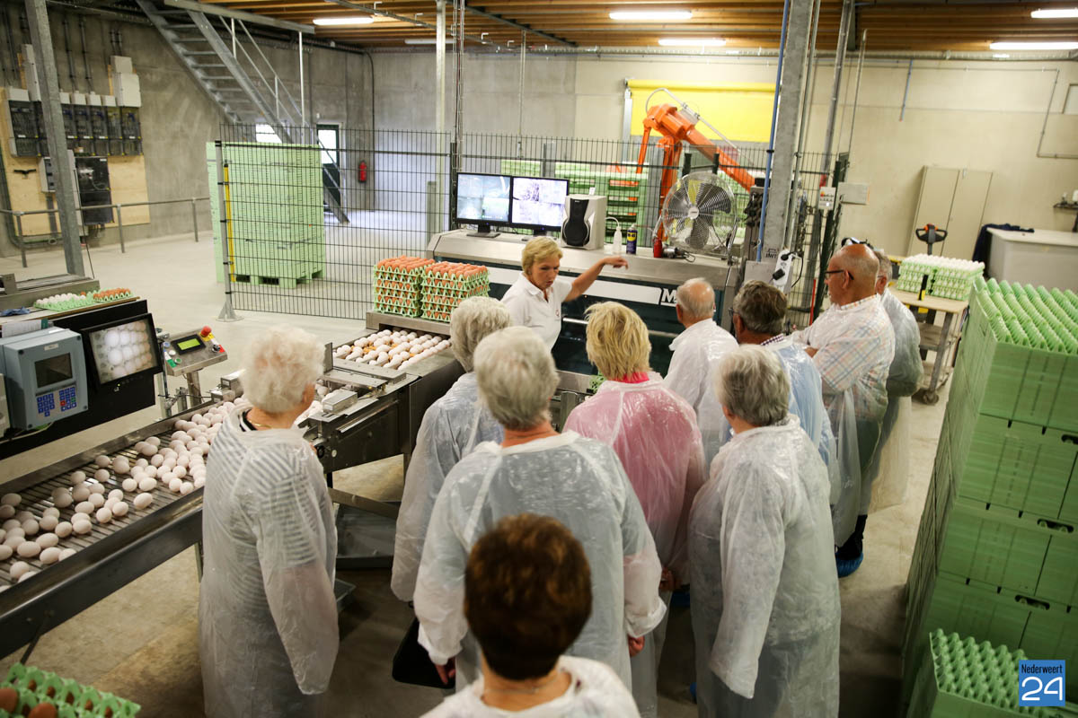 Na een interessante inleiding van directeur Henk kregen de ouderen een rondleiding door het bedrijf met uitgebreide toelichting van medewerkers Luc en Anja. De meeste ouderen hebben vroeger zelf wel wat kippen gehouden en een aantal leden heeft vroeger zelf een kippenbedrijf gehad. Ze keken hun ogen uit en stelde veel vragen over het reilen en zeilen binnen het bedrijf. Als afscheid kreeg iedereen een doosje Happy-Ei mee naar huis.