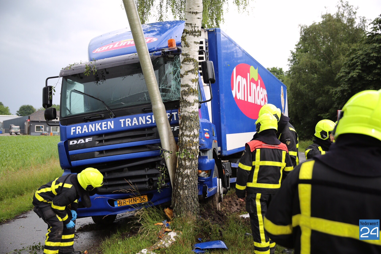 Een vrachtwagen is woensdagmiddag vlak voor de rotonde van de Venloseweg (N275) in Nederweert van de weg geraakt en tegen een lantaarnpaal en boom tot stilstand gekomen. De bestuurder is door omstanders uit het voertuig geholpen en is ter plaatse door het ambulancepersoneel behandeld.