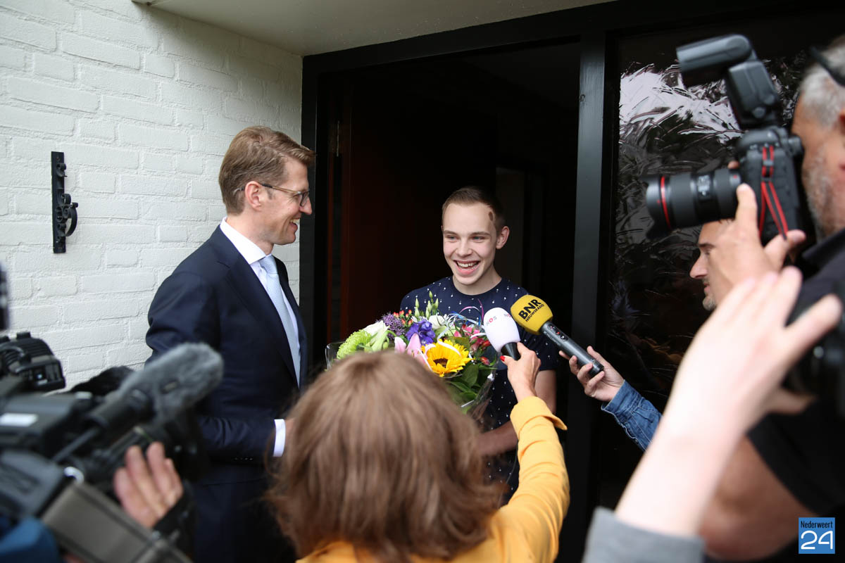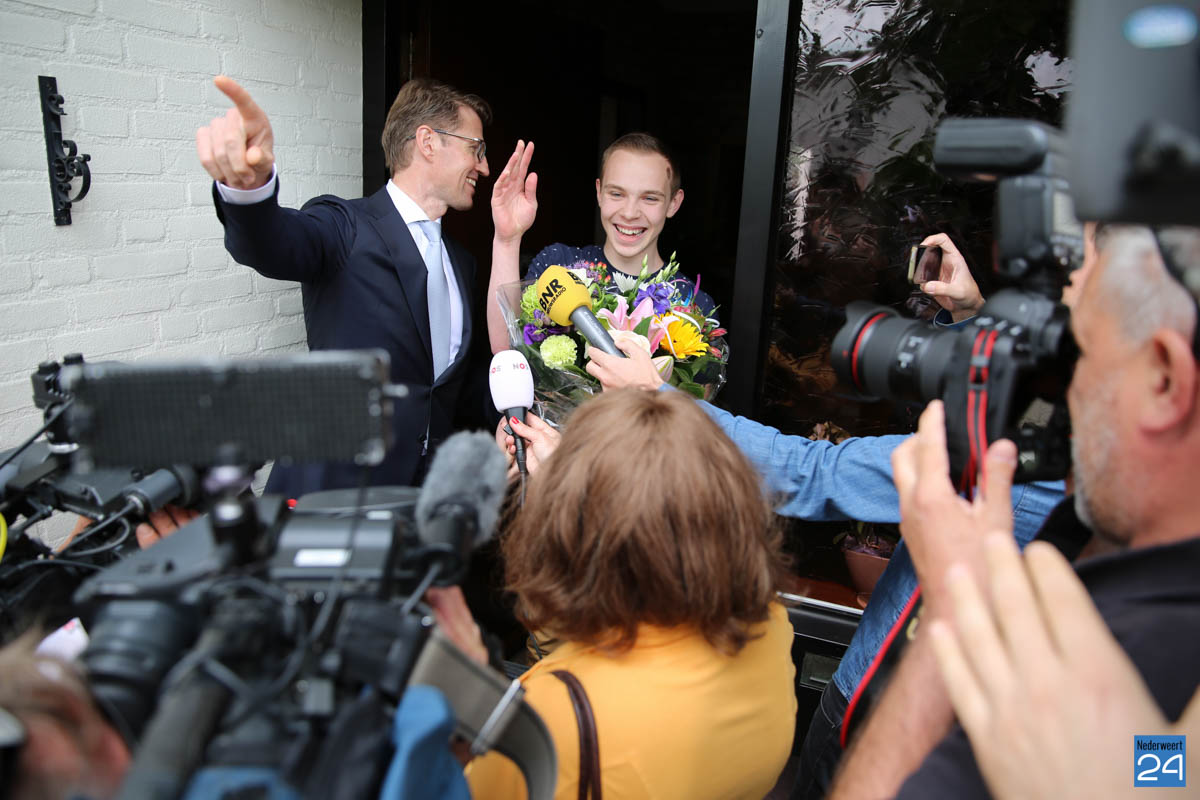 Het was een waar mediaspektakel toen de staatssecretaris met een bos bloemen aan de deur stond bij Ruud. De landelijke, regionale en natuurlijk de lokale pers was aanwezig om dit historische moment vast te leggen. “Ik had wel verwacht dat ik zou slagen, maar dit mediaspektakel had ik niet verwacht,” vertelt een zeer rustige en vrolijke Ruud. Na de zomer gaat Ruud verder met de Havo om uiteindelijk elektrotechniek te gaan studeren. Maar voordat het zover is gaat hij eerst een feestje bouwen met zijn vrienden nadat hij later op de middag zijn cijferlijst heeft opgehaald.